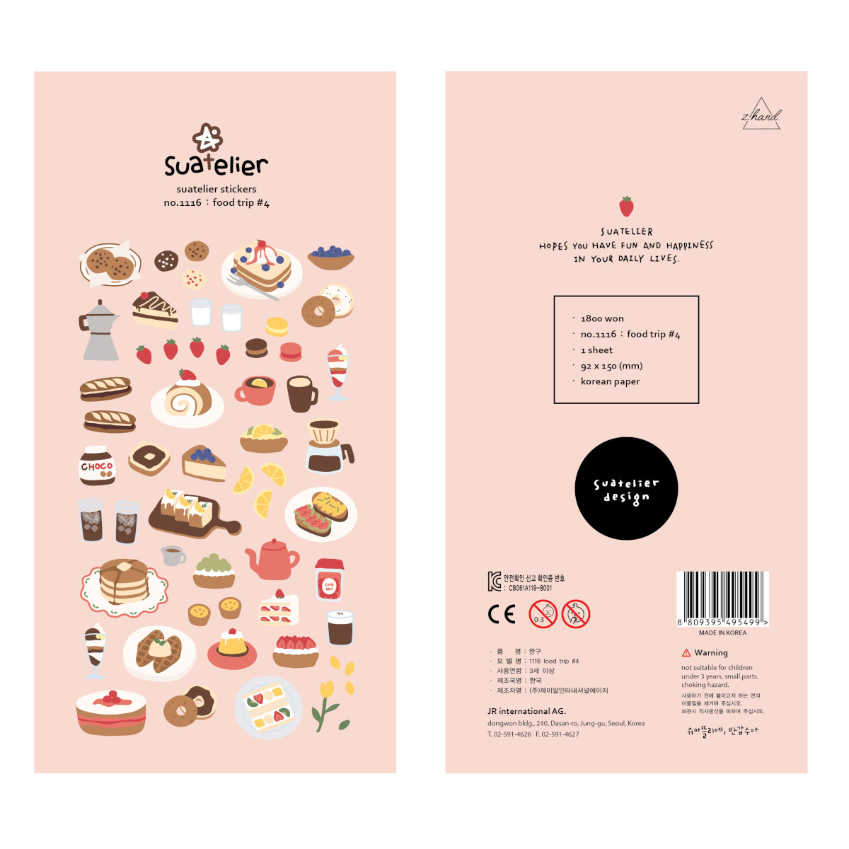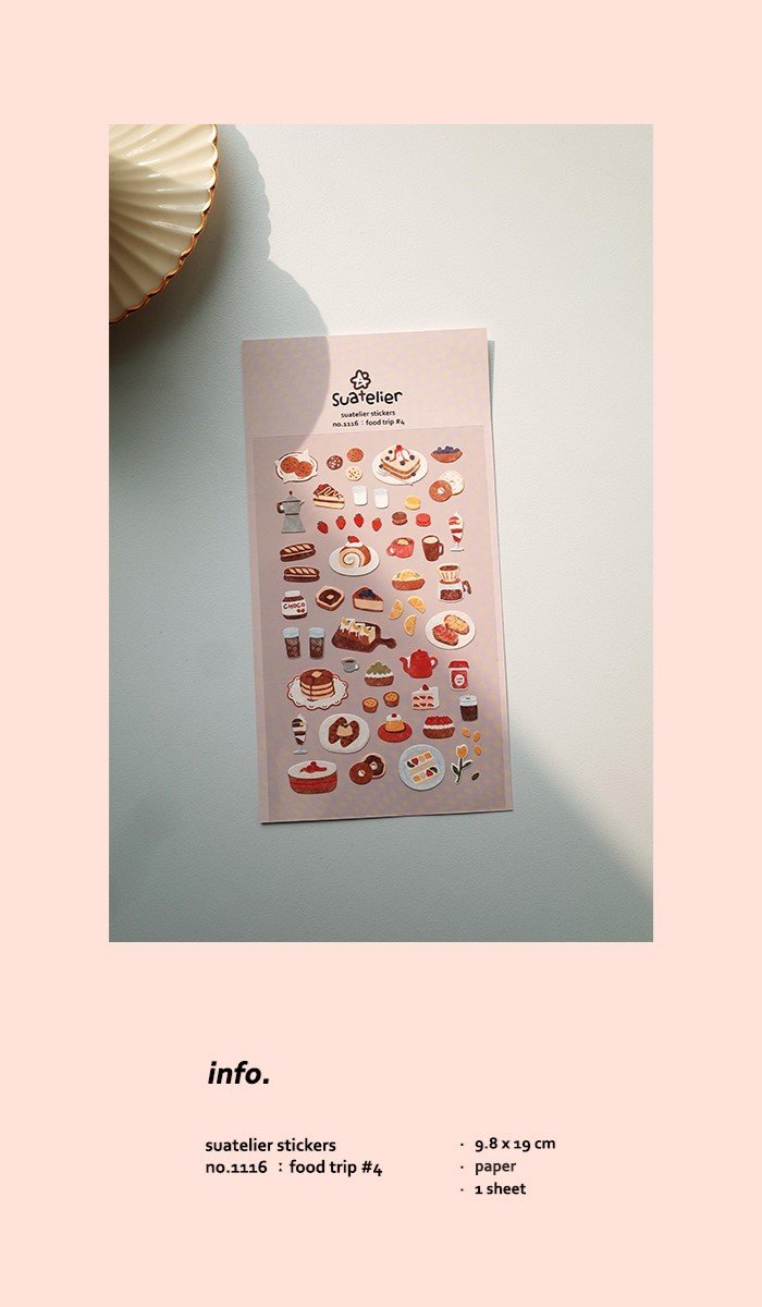 Naklejki ozdobne Jedzenie Słodycze #4 koreańskiej marki Suatelier Piękne i oryginalne naklejki samoprzylepne, które mogą być używane do ozdabiania notesów, kalendarzy, planerów, telefonów, kartek i ...