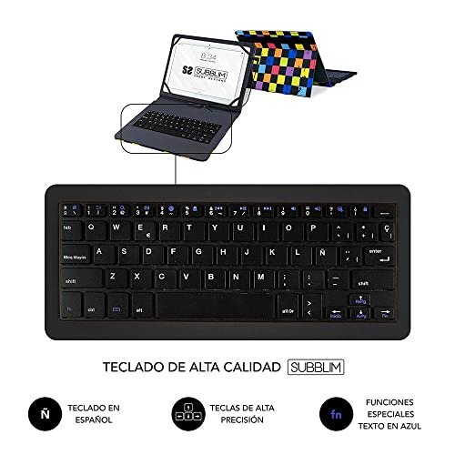 Subblim Keytab USB Squares Case z klawiaturą Tablet 10,1-calowy adapter MicroUSB typu C Etui z klapką z Subblim Keytab USB Squares – na tablet 10,125,65 cm – MicroUSB z adapterem typu C – zamknięcie ...