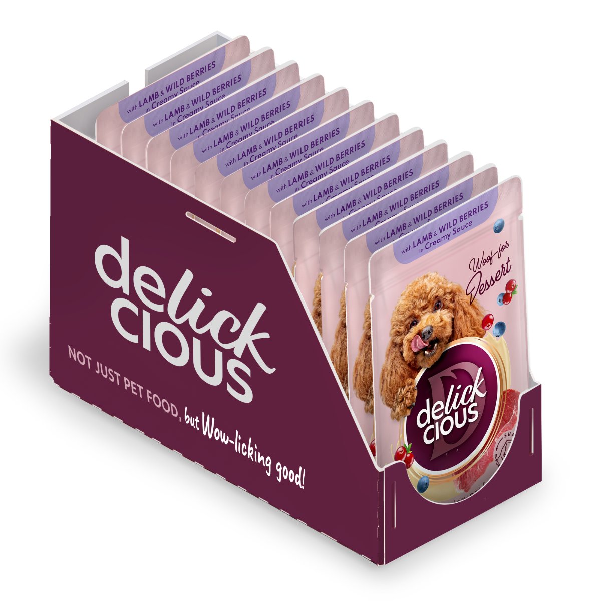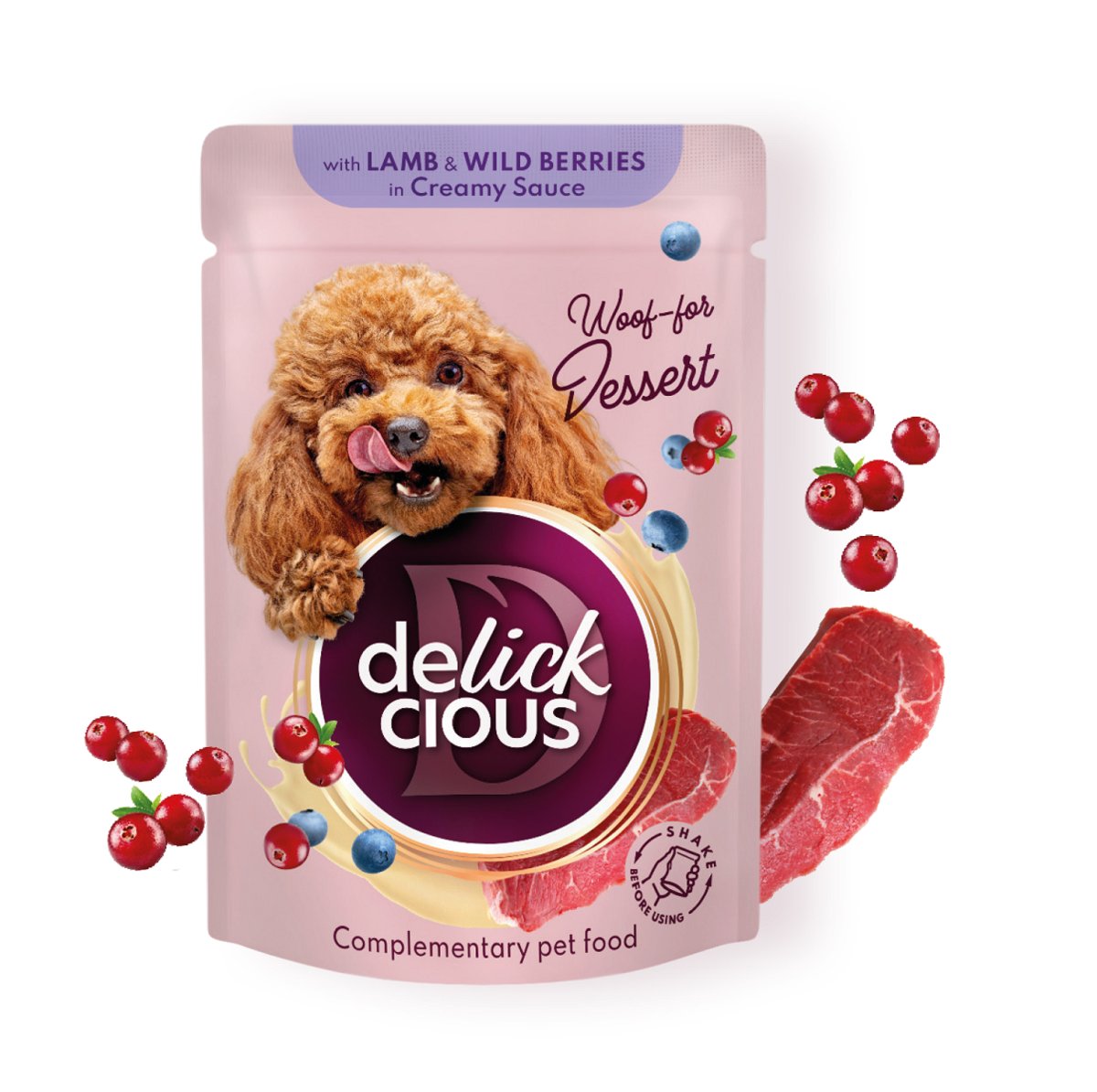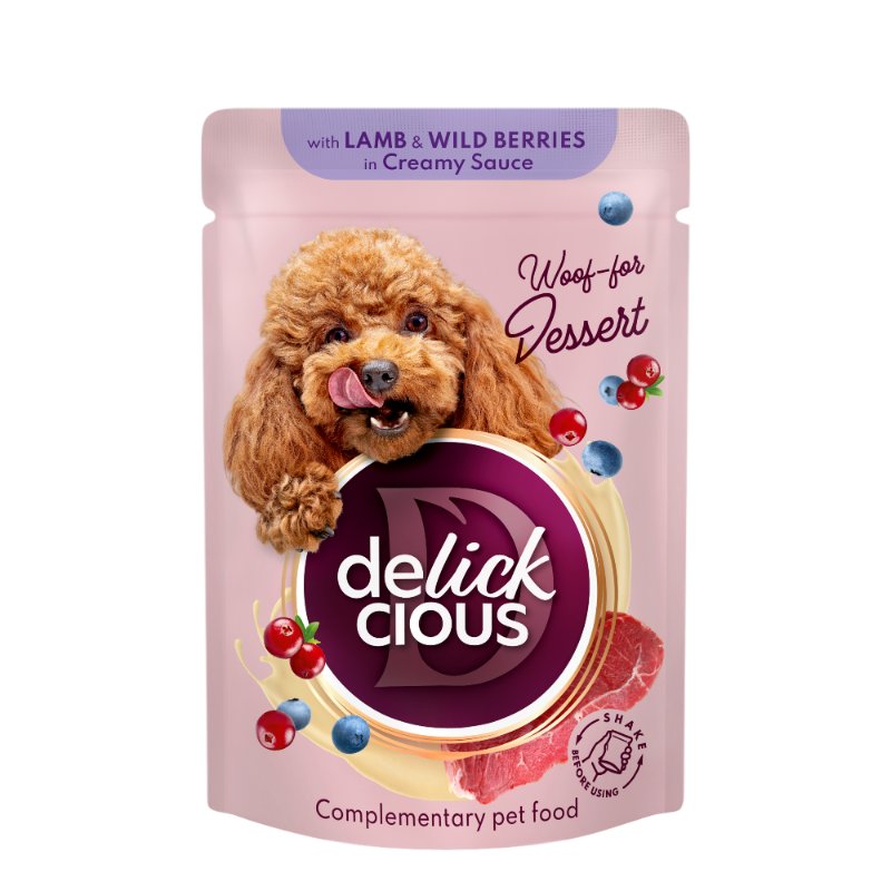Delickcious to mokra karma o wyjątkowym smaku, która z pewnością przypadnie do gustu Twojemu psu. Płatki z jagnięciną i jagodami w sosie to połączenie delikatnego, chudego mięsa z jagnięciny oraz owoców, które dostarczają psu witamin, minerałów oraz antyoksydantów. Jagnięcina to wysokiej jakości źródło białka, które wspomaga rozwój mięśni, a jagody są naturalnym źródłem witaminy C i A, które wspierają układ odpornościowy oraz zdrowie skóry. Dodatkowo, płynna konsystencja karmy zapewnia odpowiednie nawodnienie, co jest istotne dla zdrowia psa. Ta mokra karma jest doskonałym uzupełnieniem diety i sprawia, że każdy posiłek staje się prawdziwą przyjemnością.