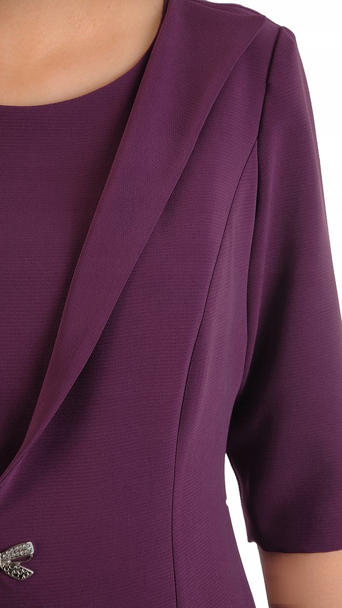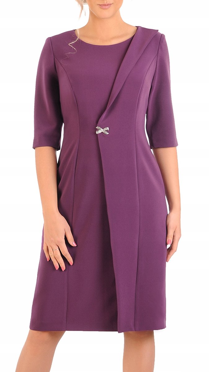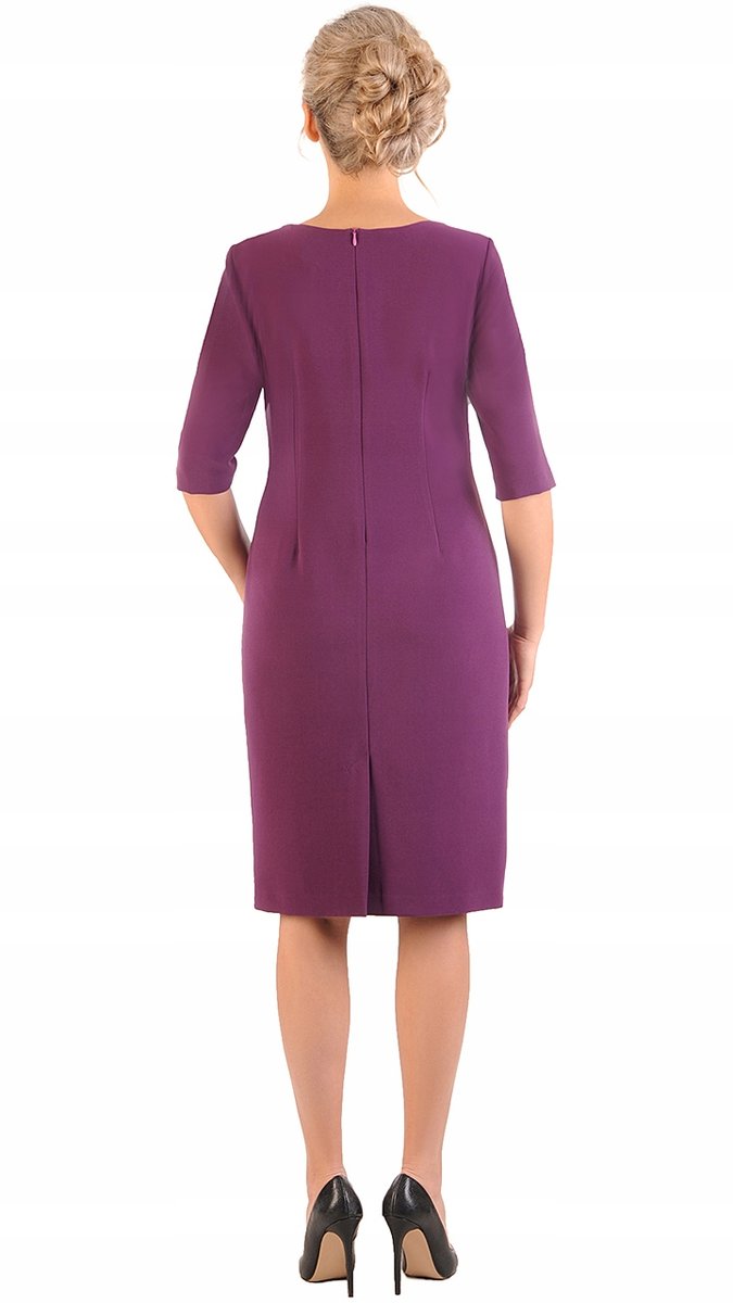 Elegancja w czystej formie z tą sukienką midi, która jest kwintesencją prostoty połączonej z funkcjonalnością. Ożywi Twoją garderobę, zapewniając jej świeży i stylowy wygląd na wiele okazji. Zaprojektowana z myślą o komforcie noszenia. Sukienka z rękawami 3/4 i okrągłym dekoltem idealnie sprawdzi się zarówno w biurze, jak i na rodzinnych spotkaniach. Zakładka na przodzie sukienki, maskująca brzuch, wraz z zaszewkami, optycznie wyszczupla sylwetkę, dodając gracji Twoim ruchom. Zachęcamy do wzbogacenia Twojej garderoby o tę sukienkę, która będzie podkreślać Twoją osobowość i zapewni wygodę przez cały dzień.