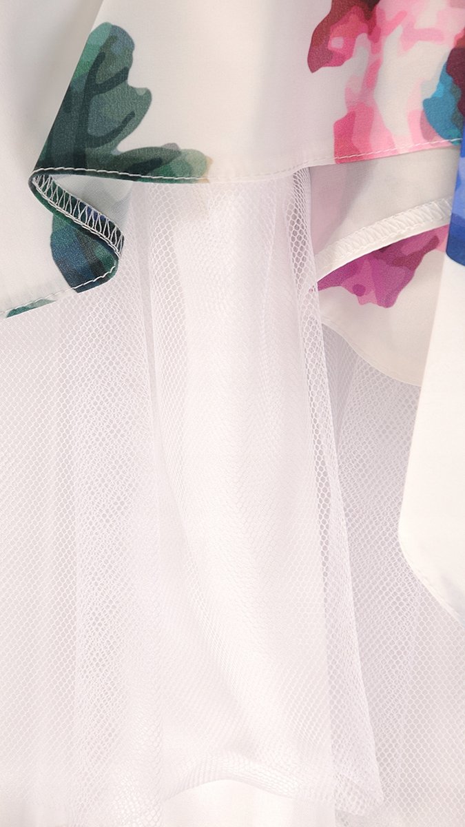 Odkryj wyjątkową rozkloszowaną sukienkę z przepięknym wzorem, która emanuje kobiecością i elegancją.Zachwycająca swoim urokiem, sukienka to doskonały wybór na specjalne okazje. Połączenie delikatnych odcieni nadaje jej subtelnego uroku, podczas gdy ozdobne detale, takie jak wiązana kokarda i tiulowa falbanka przy podszewce, dodają kreacji wyrafinowanego stylu. Z krótkimi rękawami i rozkloszowanym krojem zapewnia niezrównany komfort i swobodę ruchów, idealna do tańca przez całą noc. Wykonana z wysokiej jakości materiałów, ta sukienka jest nie tylko stylowa, ale także trwała. Długość midi zapewnia komfort i swobodę ruchu. Dzięki jej uniwersalnemu designowi, można ją nosić na różnorodne okazje, od przyjęć po uroczyste kolacje. Podkreśl swoją figurę w tej wyjątkowej sukience i poczuj się pięknie każdego dnia. Uzupełnij swój wygląd tą urokliwą sukienką i zyskaj pewność siebie na każdym kroku.