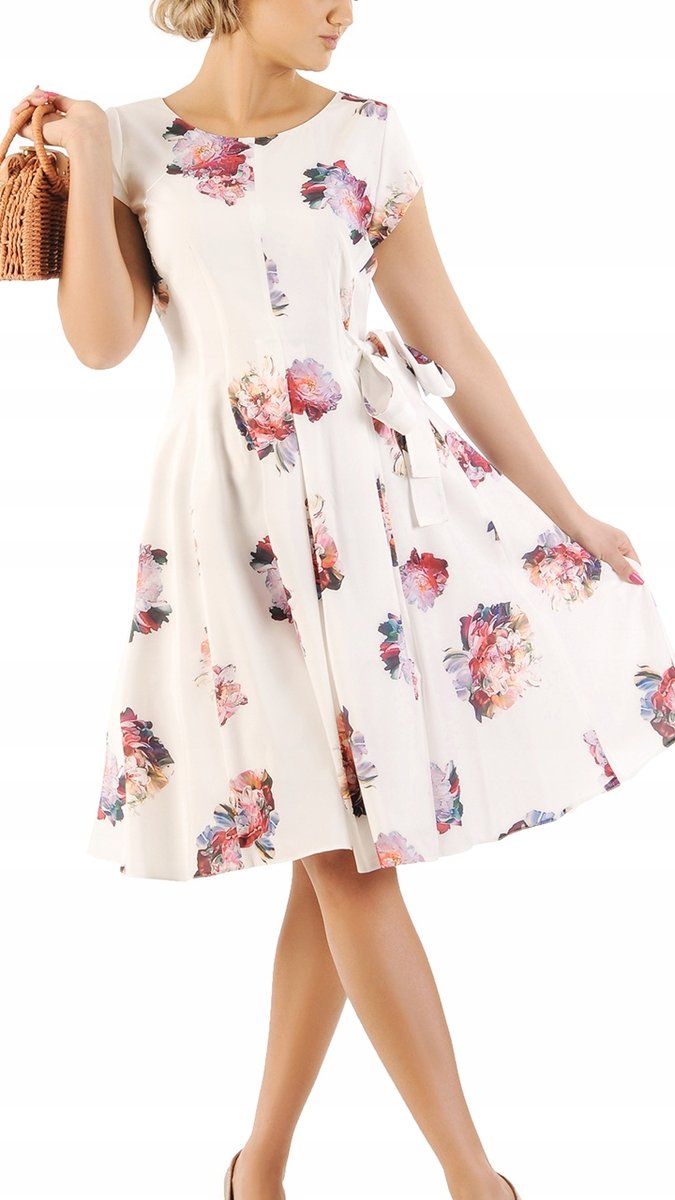 Odkryj wyjątkową rozkloszowaną sukienkę z przepięknym wzorem, która emanuje kobiecością i elegancją.Zachwycająca swoim urokiem, sukienka to doskonały wybór na specjalne okazje. Połączenie delikatnych odcieni nadaje jej subtelnego uroku, podczas gdy ozdobne detale, takie jak wiązana kokarda i tiulowa falbanka przy podszewce, dodają kreacji wyrafinowanego stylu. Z krótkimi rękawami i rozkloszowanym krojem zapewnia niezrównany komfort i swobodę ruchów, idealna do tańca przez całą noc. Wykonana z wysokiej jakości materiałów, ta sukienka jest nie tylko stylowa, ale także trwała. Długość midi zapewnia komfort i swobodę ruchu. Dzięki jej uniwersalnemu designowi, można ją nosić na różnorodne okazje, od przyjęć po uroczyste kolacje. Podkreśl swoją figurę w tej wyjątkowej sukience i poczuj się pięknie każdego dnia. Uzupełnij swój wygląd tą urokliwą sukienką i zyskaj pewność siebie na każdym kroku.