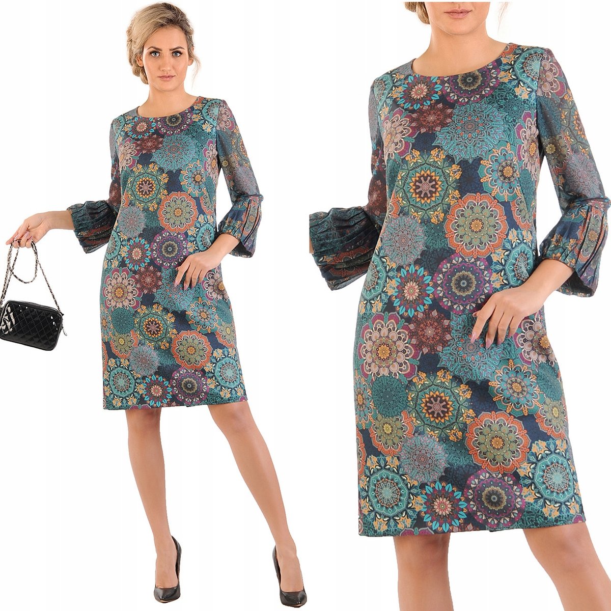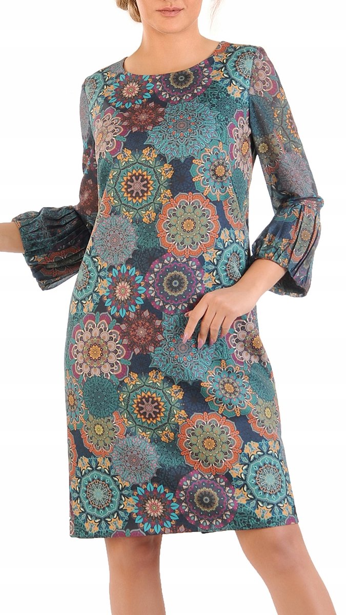 Elegancka sukienka emanuje subtelnym wyrafinowaniem dzięki oryginalnemu wykończeniu rękawów. Rękawy o długości 3/4 nadają klasycznej sylwetce nowoczesnego charakteru, a modne odcienie kolorów bez trudu przyciągają uwagę. Dekolt w literkę V z tyłu sukienki z wiązaniem nadają kreacji delikatnego romantyzmu. Sukienka o prostym kroju z gładkiego materiału oferuje ponadczasowy urok na różne okazje co czyni z niej idealną kreację na wesele, komunię, spotkania biznesowe lub nieformalne wyjścia ze znajomymi. Niezależnie od sytuacji, sukienka ta jest uosobieniem szyku bez wysiłku.