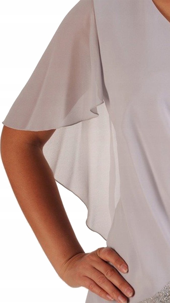 Szukasz sukienki, która doda Ci klasy i elegancji na każdym ważnym wydarzeniu? Oto ona - elegancka sukienka wizytowa z szyfonową narzutką. Ta sukienka midi to doskonały wybór na eleganckie wyjścia, które wymagają wyjątkowej stylizacji, a dopasowany krój pięknie podkreśla kobiece kształty. Krótkie, rozkloszowane rękawy oraz delikatna narzutka z szyfonu dodają kreacji lekkości i subtelnej elegancji. Drobne ozdobne cekiny w okolicy talii wprowadzają nutę blasku, nadając sukience niepowtarzalnego charakteru. Dołączona szyfonowa narzutka z długimi rękawami to praktyczny dodatek, który zapewni Ci komfort termiczny i dopełni stylizację. Dekolt w serek dodatkowo wysmukla figurę, a długość do kolan czyni tę kreację niezwykle uniwersalną. Idealna na każdą okazję, gdzie chcesz wyglądać elegancko i czuć się swobodnie. Ta sukienka to idealny wybór na wesela, bale, uroczyste kolacje i inne wyjątkowe okazje. Poczuj się wyjątkowo i olśniewaj wszystkich swoją elegancją!