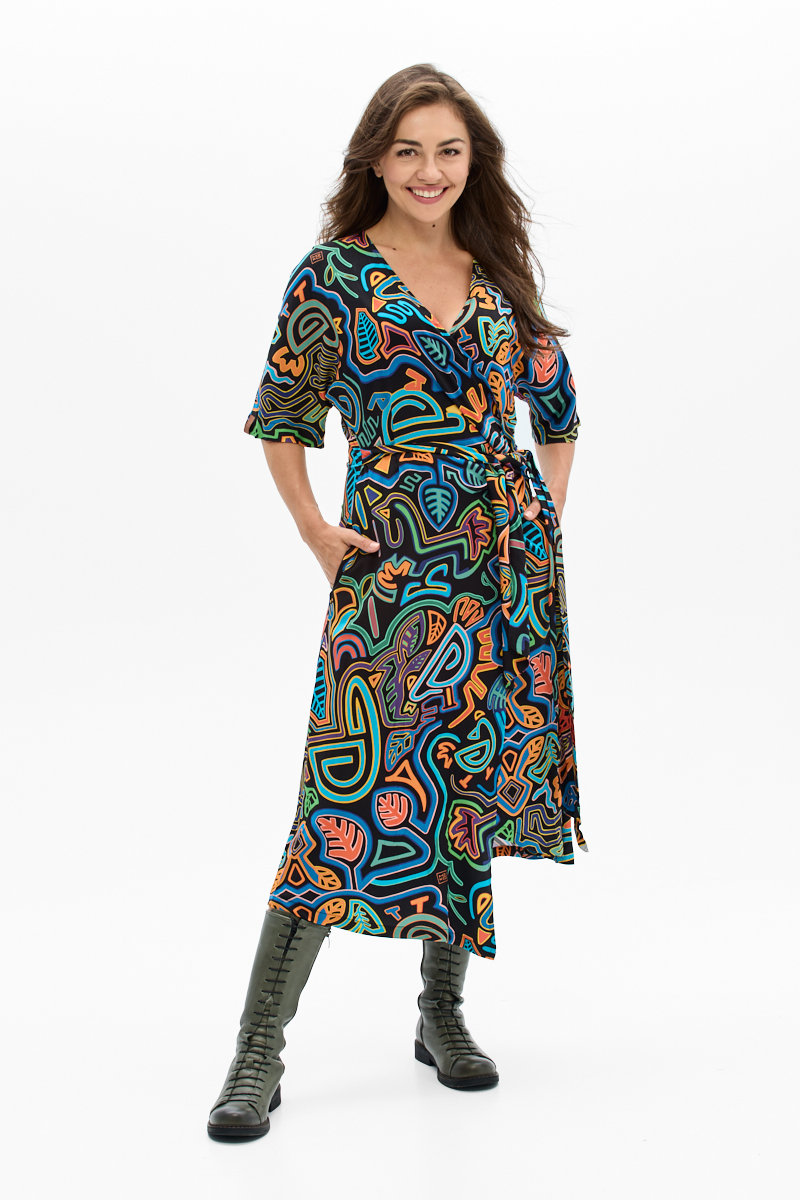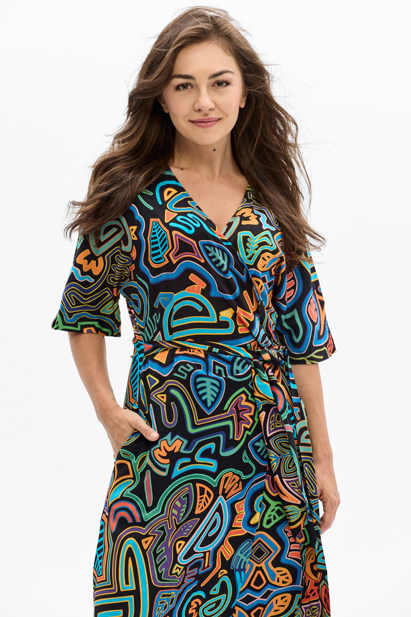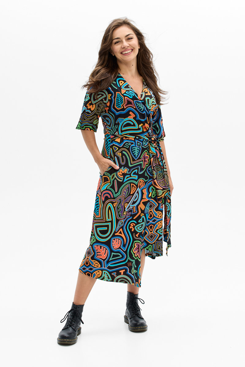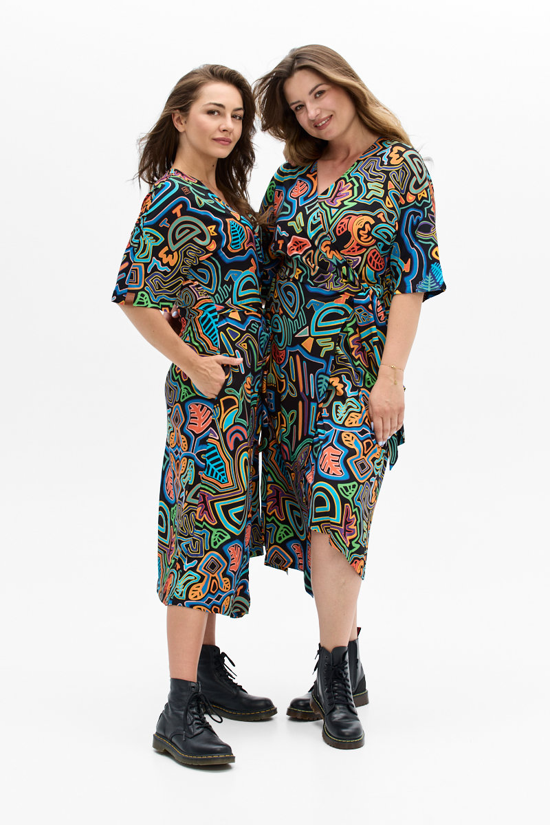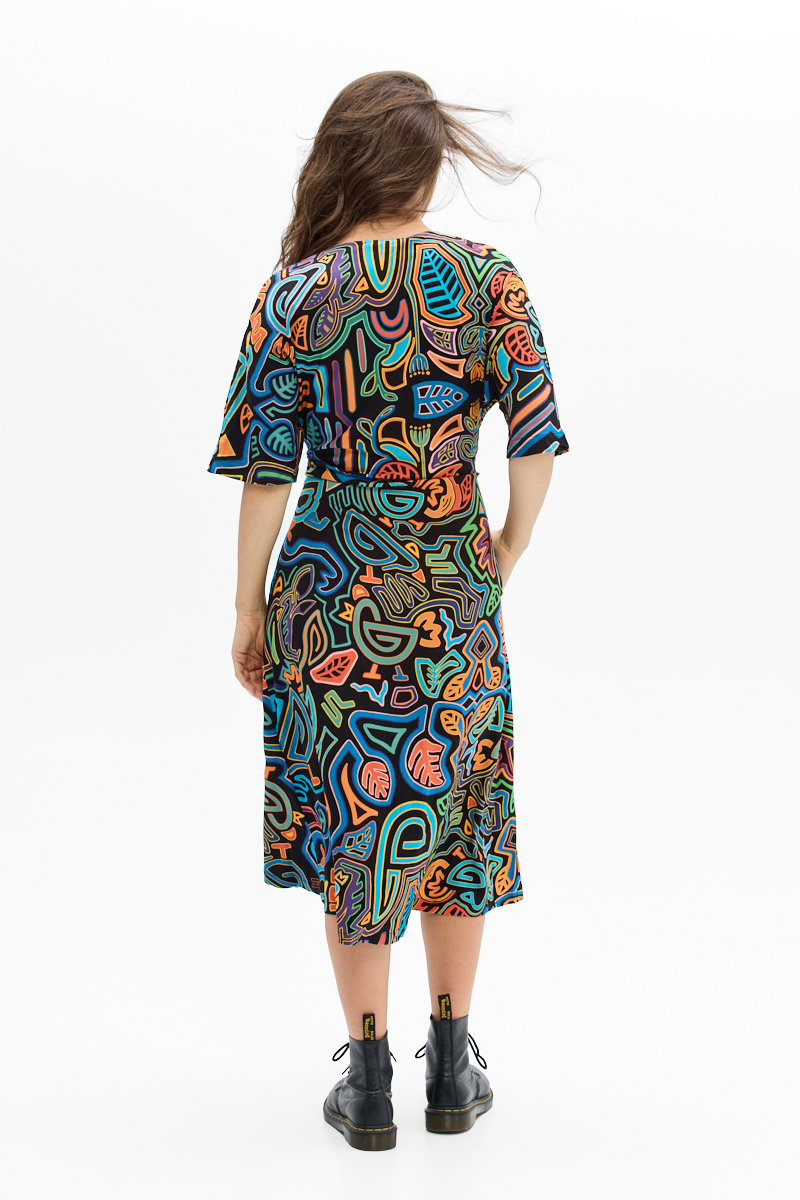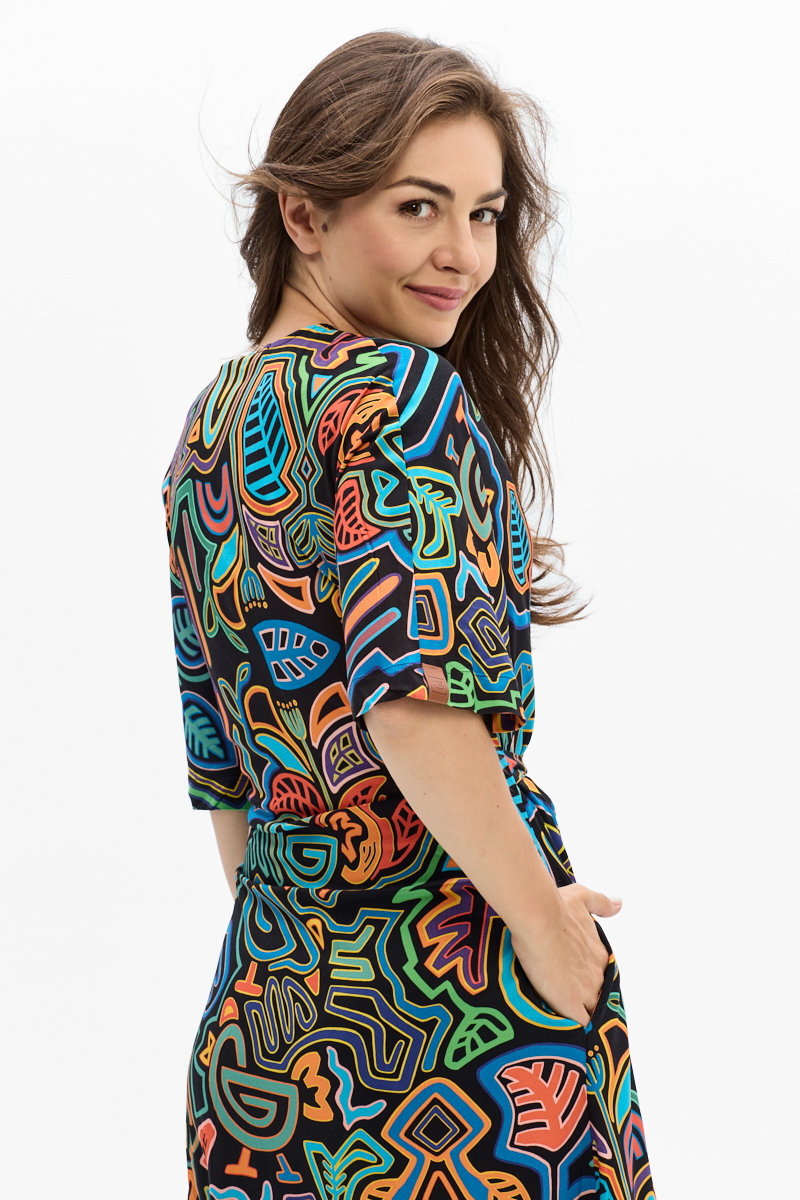Dzięki zwiewnej tkaninie wiskozowej, sukienka pięknie się układa i jest bardzo wygodna. Ten klasyczny fason w połączeniu z unikalnymi printami to oryginalny model, w którym na pewno nie pozostaniesz niezauważona!
