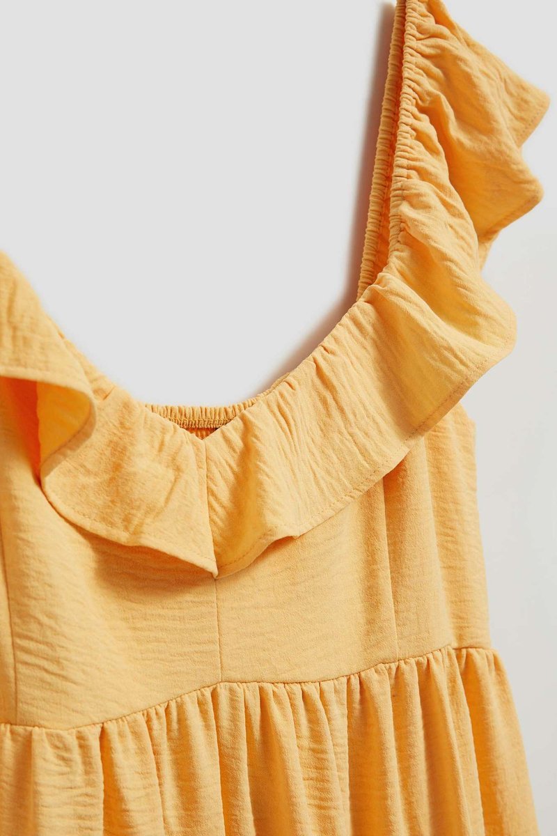 100%POLIESTER Sukienka maxi o pięknym żółtym kolorze. Na całości dwa rzędy falban, które nadają sukience lekkości i uroku. Zwężona w talii. Od pasa w dół jest rozkloszowana, niekrępująca ruchów. Na plecach szeroki ściągacz, który zapewnia maksymalny komfort noszenia. Krótki rękawek i dekolt obszyty delikatną falbanką. Jest to idealna opcja na wyjątkowe okazje, takie jak wieczorne przyjęcia, wesela czy uroczyste spotkania.