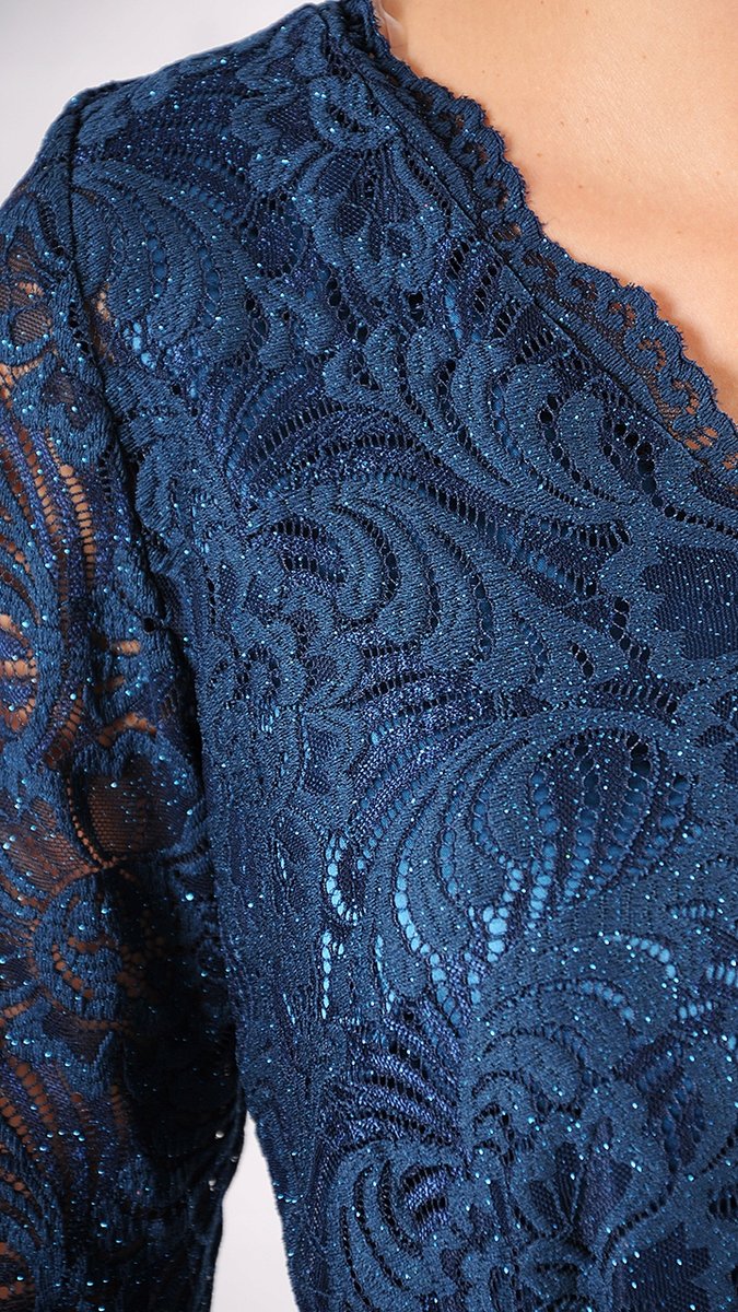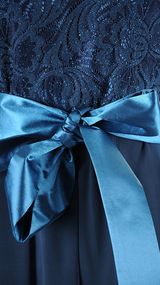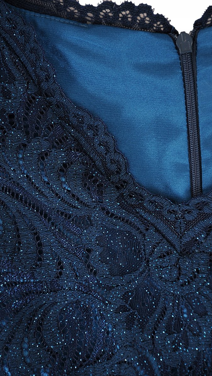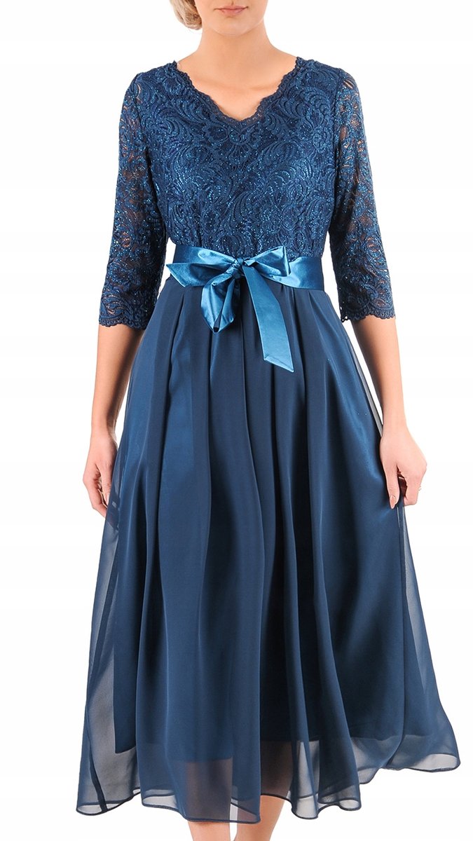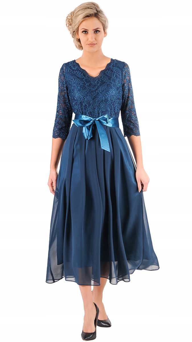 Oto sukienka, która jest kwintesencją szykownej elegancji i subtelnego uroku. Góra kreacji, wykonana z delikatnej koronki z kwiatowym motywem i odrobiną brokatu subtelnie połyskuje, dodając odrobinę tajemniczości, podczas gdy dół z lekkiego szyfonu płynnie opada, tworząc efektowne kontrafałdy. Dół z lekkiego, zwiewnego szyfonu pięknie układa się podczas ruchu, dodając całej stylizacji lekkości i wdzięku. Atłasowy pasek podkreśla talię, akcentując rozkloszowaną formę sukni. Rękawy o długości 3/4 są wygodne i stylowe, a dekolt w kształcie serca subtelnie podkreśla szyję. Maxi długość sukienki, połączona z przewiewną spódnicą, zapewniają wyjątkowy komfort i zachwycający wygląd na każdym kroku. Tył zapinany na kryty suwak, zapewniający wygodę i doskonałe dopasowanie do sylwetki. Wbudowana podszewka gwarantuje komfort noszenia, a gładka i matowa tkanina prezentuje się niezwykle szykownie. Ta kreacja to idealny wybór na wesela, bankiety czy inne uroczyste wydarzenia, gdzie chcesz poczuć się wyjątkowo i olśniewać swoją prezencją. Wbierz tą ponad czasową kreację i olśniewaj na każdym wieczorowym wydarzeniu.
