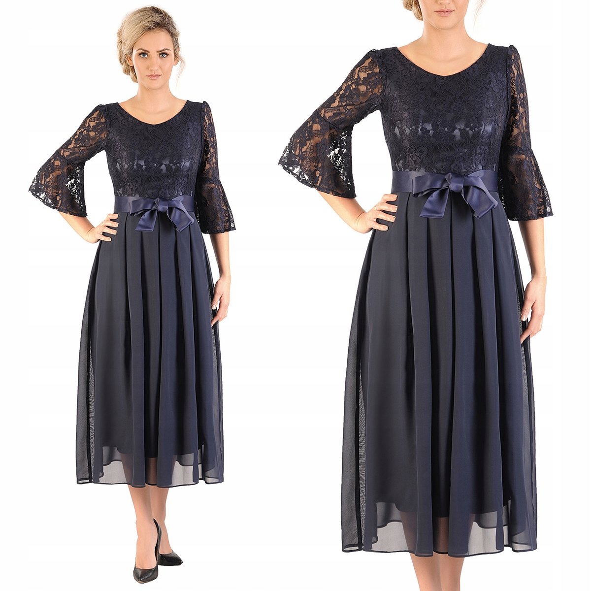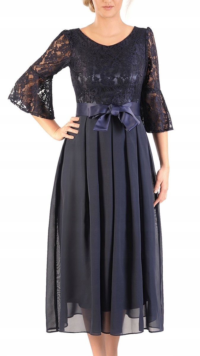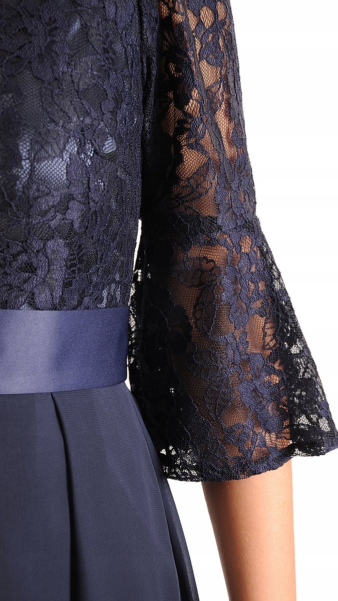 Oto sukienka, która jest kwintesencją szykownej elegancji i subtelnego uroku. Góra z delikatnej koronki oraz spódnica z lejącego się szyfonu tworzą idealne połączenie dla każdej uroczystości. Elegancka i rozkloszowana, z ozdobnym paskiem i kontrafałdami dodającymi gracji, kreacja która doskonale podkreśla sylwetkę. Rękawy o długości 3/4 są wygodne i stylowe, a dekolt w kształcie serca subtelnie podkreśla szyję. Maxi długość sukienki, połączona z przewiewną spódnicą, zapewniają wyjątkowy komfort i zachwycający wygląd na każdym kroku. Wbierz tą ponad czasową kreację i olśniewaj na każdym wieczorowym wydarzeniu.