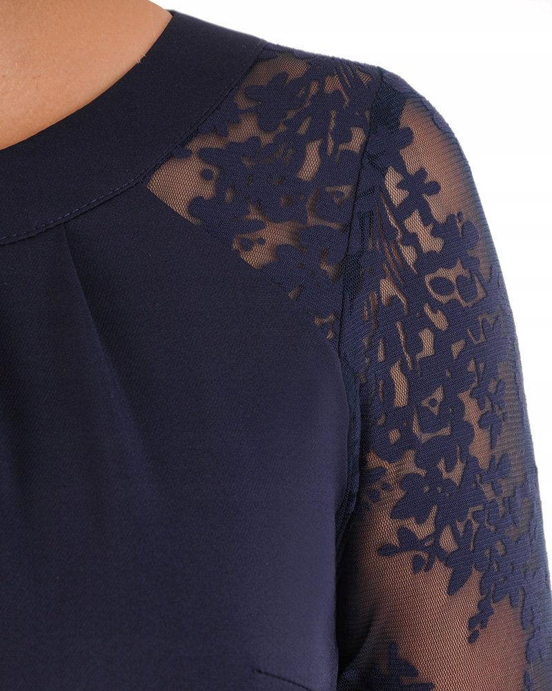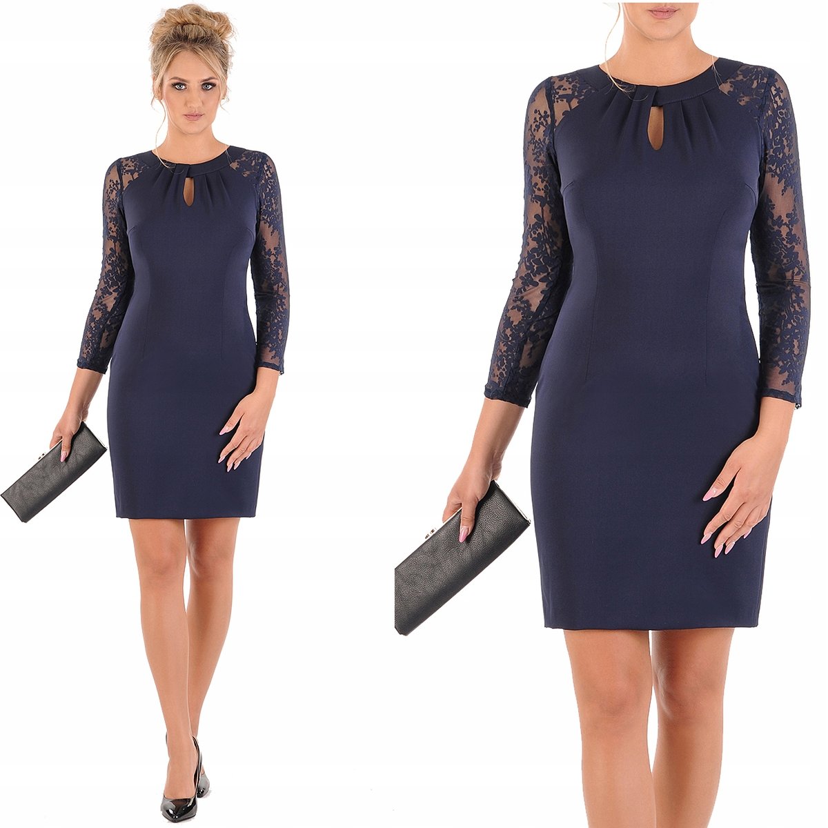 Zachwyć się elegancją tej sukienki, która doskonale łączy klasykę z nowoczesnym stylem. Dekolt okrągły z finezyjnymi zakładkami i ozdobnym wycięciem w kształcie łezki podkreślają wyrafinowany charakter kreacji. Długie, koronkowe rękawy dodają lekkości i subtelności. Dolna część sukienki to ołówkowa spódnica z wyszczuplającymi zaszewkami, która idealnie dopasowuje się do sylwetki, podkreślając jej atuty. Jej krój mini subtelnie podkreśla nogi, jednocześnie zachowując szyk i klasę. Kreacja ta, to propozycja dla kobiet, które chcą wyróżnić się w tłumie i poczuć się wyjątkowo.Ta elegancka sukienka to doskonały wybór na wyjątkowe okazje, pozwalając poczuć się pięknie i pewnie siebie.
