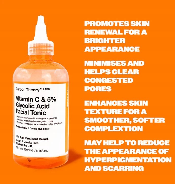 Właśnie zrecenzowałem Tonik do twarzy z 5% kwasem glikolowym i wit C, Carbon Theory SupaVIT-C