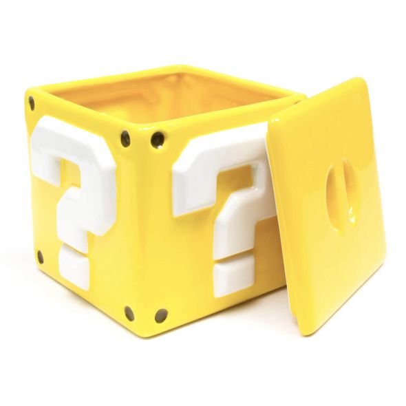 Pojemnik do przechowywania Super Mario Question Mark BlockPojemnik ceramiczny z pokrywką z motywem z popularnej gry.Produkt idealny do przechowywania ciastek, kawy, herbaty, przypraw, czy innych ...