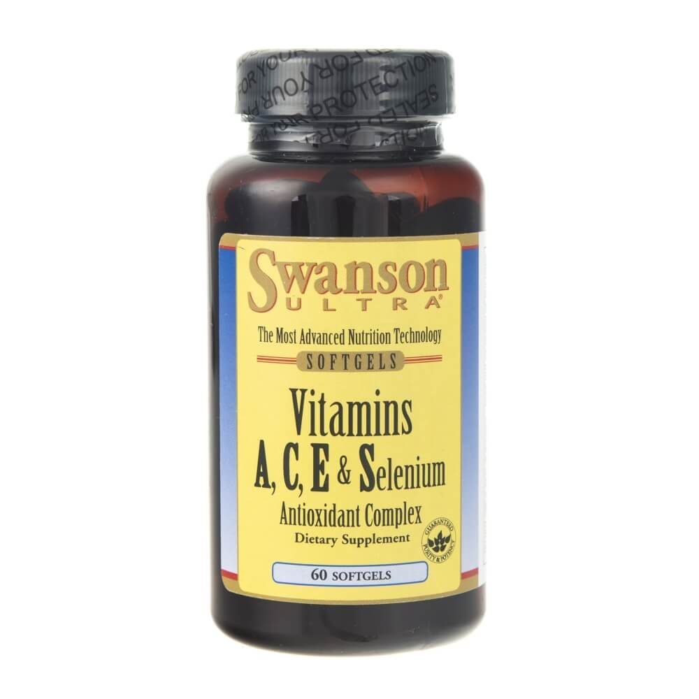 - vitamins A, C, E & Selenium marki Swanson to suplement diety zawierający witaminę A jako beta karoten, witaminę C jako kwas askorbinowy, witaminę E jako octan d-alfa tokoferolu oraz selen z drożdży selenowych