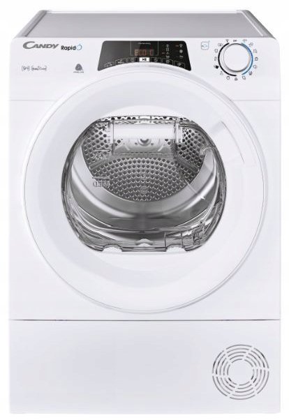 Suszarka wolnostojąca z pompą ciepła o maksymalnym załadunku 9kg. Candy RapidÓ to najszybsza i najwygodniejsza suszarka jaką kiedykolwiek zaprojektowano, by codzienne pranie było proste i efektywne jak nigdy dotąd. Posiada najbardziej kompletny zestaw 7 szybkich cykli, trwających mniej niż 90 minut.