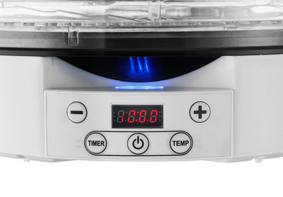 | Funkcje suszarki spożywczej: | timer, wentylator, płynna regulacja temperatury |