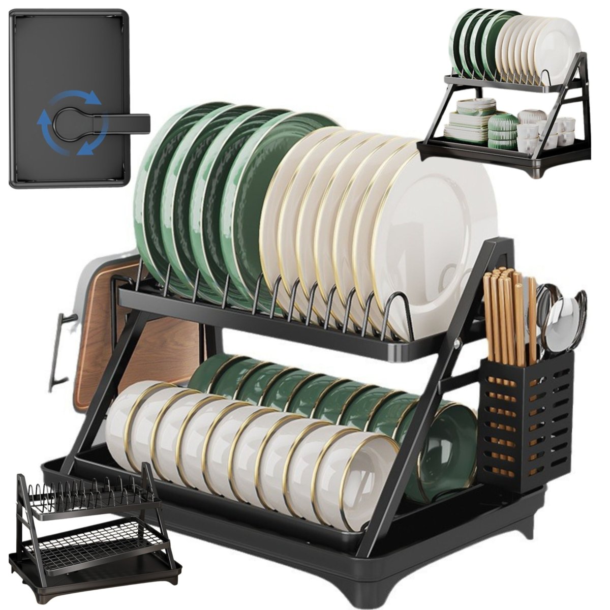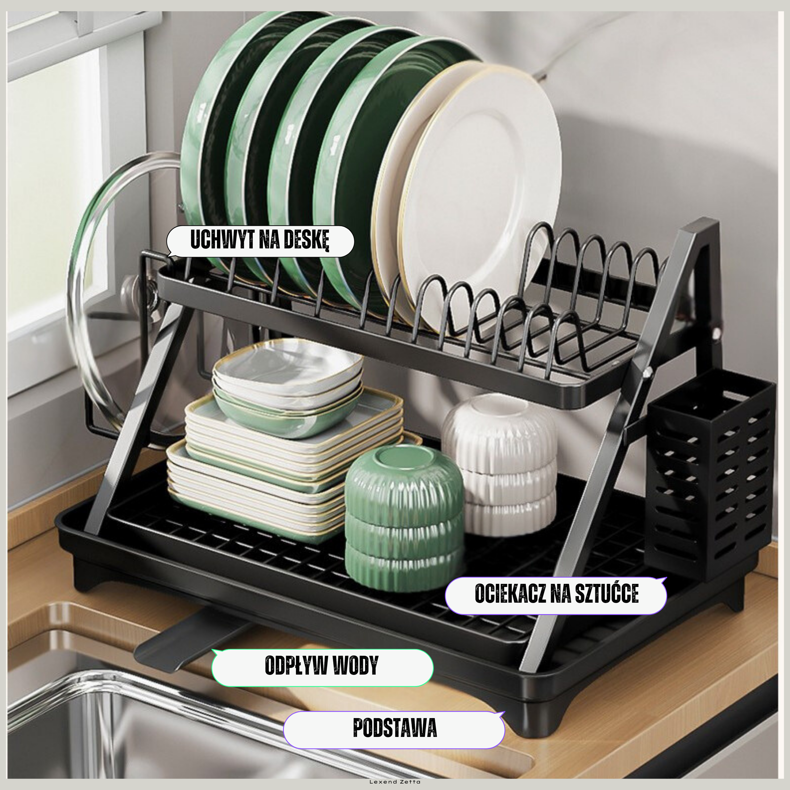 SUSZARKA DO NACZYŃ OCIEKACZ Z ODPŁYWEM DWU POZIOMOWA 29.5x39.5x42 Nowoczesna suszarka do naczyń: ✅ Solidna nowoczesna i elegancka. ✅ Minimalistyczny wzór będzie ozdobą każdego blatu. ✅