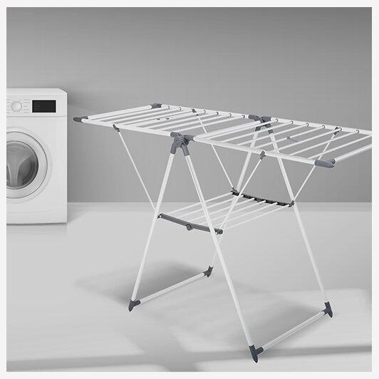 Dodatkowym atutem suszarki Sinan są łatwe w składaniu i blokowaniu mechanizmy. Dzięki wygodnemu pokrętłu do otwierania i zamykania suszarki, można szybko i sprawnie złożyć ją po zakończeniu suszenia. Do suszarki dołączone są również klipsy do mocowania 2 ramion, co zapewnia dodatkową stabilność i bezpieczeństwo podczas suszenia.