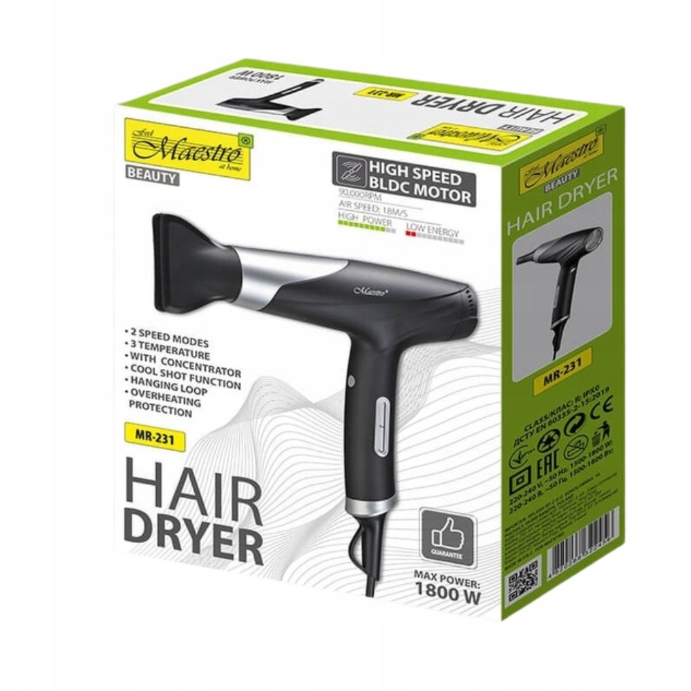 | Nazwa: | Suszarka do włosów 1800W MAESTRO MR-231 |