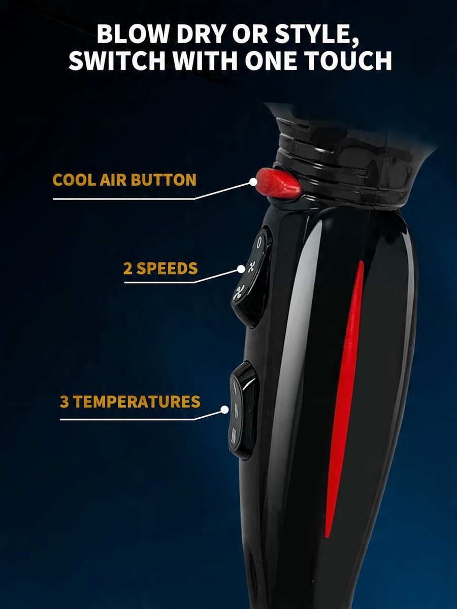 PROFESJONALNA STYLIZACJA W SALONIE - ta suszarka do włosów ma 3 ustawienia temperatury i 2 ustawienia prędkości, a także chłodny nawiew jednym przyciskiem. Gorące powietrze suszy, a chłodne utrwala, dzięki czemu można dostosować stylizację do własnych potrzeb. 2 kolektory powietrza o różnych rozmiarach zapewniają skoncentrowany przepływ powietrza i pozwalają nadać fryzurze dowolny kształt.