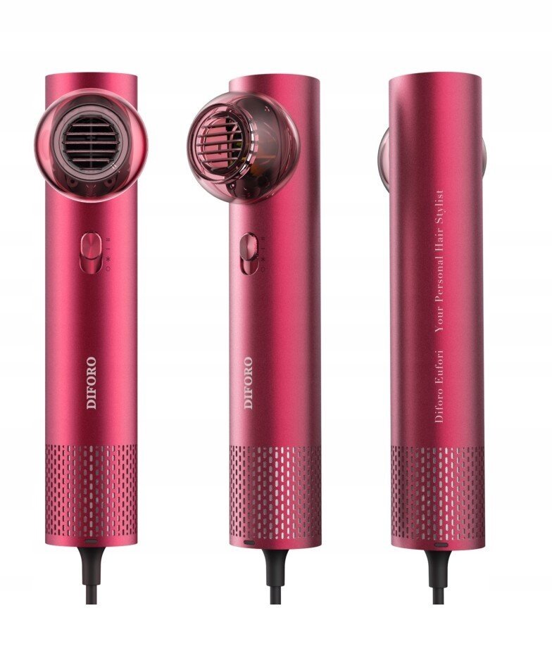 Diforo Eufori to unikalne i całkowicie nowe spojrzenie na suszenie i stylizację włosów. Efektowność jest równocześnie zastępowana efektywnością. Każdy element i funkcjonalność zapewnia to, co najważniejsze i oczekujemy od urządzenia, które przecież używamy prawie codziennie. Największą zaletą i tym, co wyróżnia Eufori, jest emiter plazmowy, niewielkie urządzenie umieszczone przy wylocie powietrza, dzięki wymianie plazmy nasyca cząsteczki powietrza skoncentrowaną plazmą o dodatnich i ujemnych ładunkach. Diforo wykorzystuje silna koncentracje 8m+ i 3m-. Wymiana plazmy to coś więcej niż jonizacja, cząsteczki o dwóch biegunach błyskawicznie neutralizują powstawanie elektryczności na powierzchni włosa podczas suszenia. Dzięki tej technologii zapomnisz o zmierzwionych i niesfornych włosach. Włosy stają się również bardziej miękkie, lśniące i łatwiejsze do stylizacji. Plazma ma również niezastąpione właściwości skuteczne w utrzymaniu wewnętrznej wilgotności włosów. Cząsteczki plazmy otaczane wodą tworzą na powierzchni włosa powłokę, nadając mu głębokie nawilżanie. Łuski włosa zostają w naturalny sposób domknięte i wygładzone. Eufori to suszarka, która znacząco skraca czas suszenia, zachowuję włosy w dobrej kondycji, nie niszczy ich. Wykorzystując japońską technologię i silnik zmniejszyliśmy moc i pobór energii jednocześnie zwiększając wydajność urządzenia. W pięknej obudowie zamknęliśmy prawdziwą moc. Masz pełną kontrolę nad temperaturą i jej wykorzystaniem w suszeniu i stylizacji. Suszarka ma 3 poziomy intensywności i oddziaływania ciepła. Możesz suszyć chłodnym, ciepłym i bardzo ciepłym powietrzem w zależności od twoich preferencji. Dzięki kanałowi powietrza, który jest w całości pionowy, wlot, przepływ i napędzane przez silnik powietrze nie natrafia na żadne przeszkody. Ta technologia zwiększa siłę oddziaływania strumienia powietrza, a to znacznie przyspiesza suszenie włosów. Najmniejsze elementy znaczą najwięcej. Opatentowany wzór siatki wlotu powietrza wykonany ze stali nierdzewnej 304 i średnicy 0,7mm skutecznie zapobiega zasysaniu włosów i kurzu jednocześnie nie ogranicza znacząco przepływu powietrza. Suszarka staje się bezpieczna i wydajna. Obudowa została w całości wykonana z aluminium. Zapewnia to nieosiągalne na rynku doznania i wytrzymałości. Konstrukcja doskonale leży w dłoni, zapewniając wygodę i swobodę ruchów. Możesz suszyć włosy pod każdym kątem i w ulubionej pozycji nie mącząc rąk i nadgarstków. Suszarka wykorzystuję specjalnie formowaną kopułę jako wylot powietrza. Jej kształt oraz wewnętrzne przegrody dodatkowo rozpraszają strumień powietrza. Dzięki takiej konstrukcji nie jest już koniecznie dynamiczne potrząsanie suszarki, by objąć suszeniem więcej włosów. Kopułka jest dodatkowo podświetlana 4 czerwonymi diodami LED. W zestawie z suszarką otrzymasz 2 unikalne dyfuzory do modelowania loków. Każdy ma inne zadanie. MPO Multipoint odpowiada za intensywne modelowanie i podkręcanie, pełny efekt dyfuzji. MPL Multiples ma za zadanie podnosić włosy, zwiększać ich objętość i delikatnie podkręcać, niepełny efekt dyfuzji.