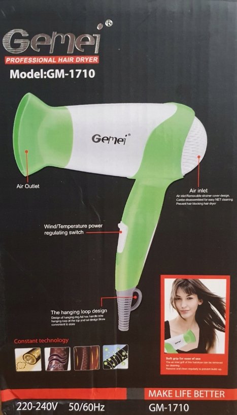 Właśnie zrecenzowałem Suszarka do włosów Gemei GM-1710 1100W żółty i zielony