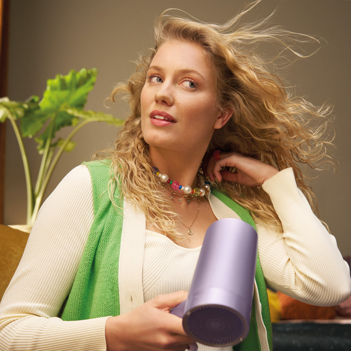 Zapewnia włosom nawilżenie. Za każdym razem, gdy włączasz suszarkę, tworzą się tysiące cząsteczek wody. Pomyśl o pełnej blasku stylizacji!