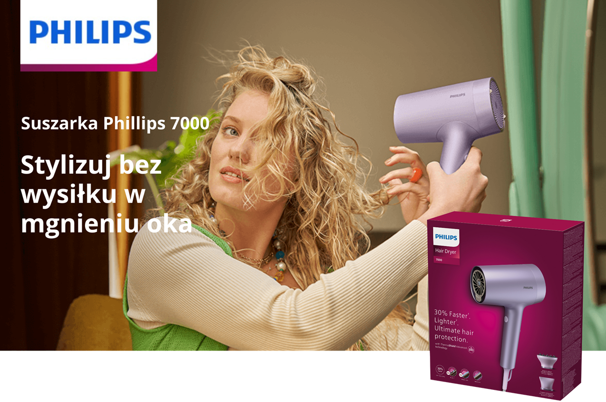 *W zestawieniu z modelem Philips Moisture/Protect 8280, porównując czas suszenia i przy najwyższej szybkości nadmuchu i temperaturze powietrza.