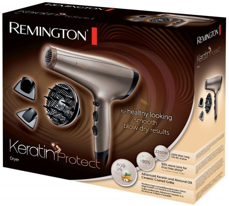 Ponadto urządzenie jest wyposażone w generator jonów, który produkuje aż o 90 procent więcej jonów w porównaniu do standardowych suszarek Remington. Jony pomagają unikać elektryzowania się włosów, nadając im jednocześnie zdrowy blask. Trwały silnik zasilany przewodem gwarantuje szybkie suszenie włosów.