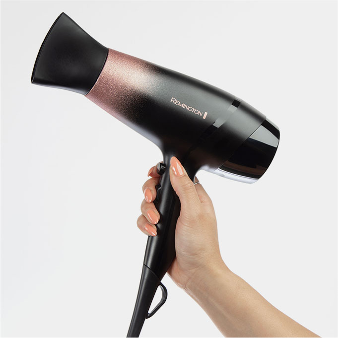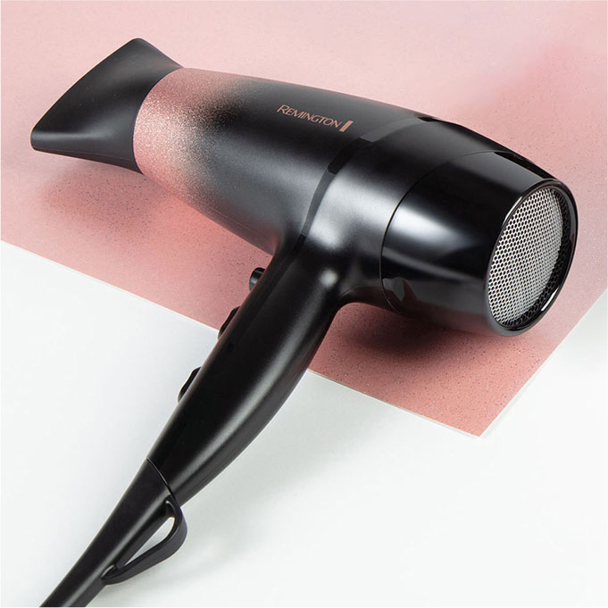 Dodaj swoim włosom blasku z suszarką Rose Shimmer od marki Remington. Urządzenie zwraca uwagę nie tylko smukłą konstrukcją i błyszczącym, różowym wykończeniem, ale także szerokimi możliwościami, jakie Ci daje.