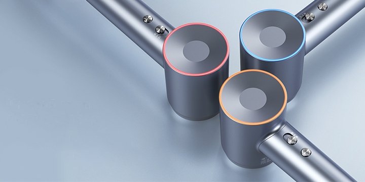 To Ty wybierasz, jaki tryb suszenia jest najodpowiedniejszy dla Twoich włosów. Obsługa jest niebywale prosta – o wybranym trybie poinformuje Cię wskaźnik LED. Czerwony kolor oznacza, że z suszarki wypuszczane jest gorące powietrze (80°C), żółty – ciepłe (50°C), a niebieski – zimne (temperatura pokojowa). Przytrzymanie odpowiedniego przycisku powoduje uruchomienie funkcji cyrkulacji powietrza, podczas której cieszyć się możesz na przemian ciepłym i zimnym powietrzem. Ustawić możesz także moc i prędkość (wysoka/niska).