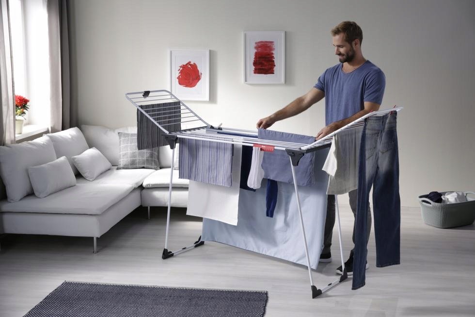 Wolnostojąca suszarka do ubrań Magnum jest wyposażona w szerokie, aluminiowe linki, co zapobiega powstawaniu zagnieceń na częściach garderoby, a w efekcie ułatwia prasowanie.