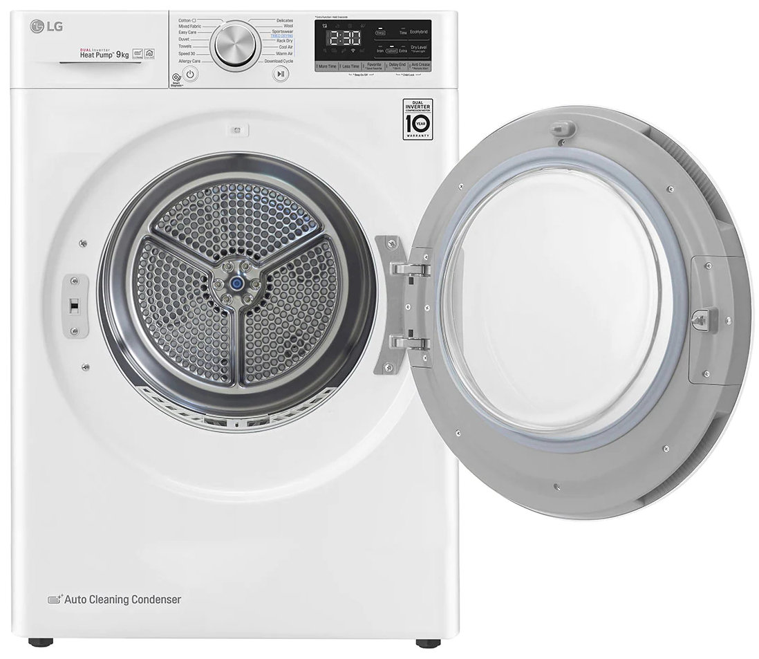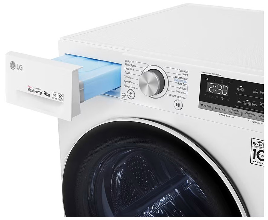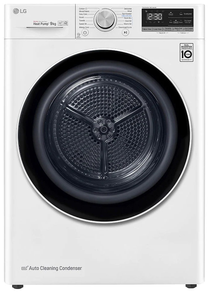 Suszarka LG RC90V9AV4N OPIS: Suszarka kondensacyjna (z pompą ciepła) o pojemności znamionowej 9 kg oraz głębokości 69 cm, w klasie energetycznej A+++. Zużycie energii 194 kWh/rok. Opóźniony start. ...