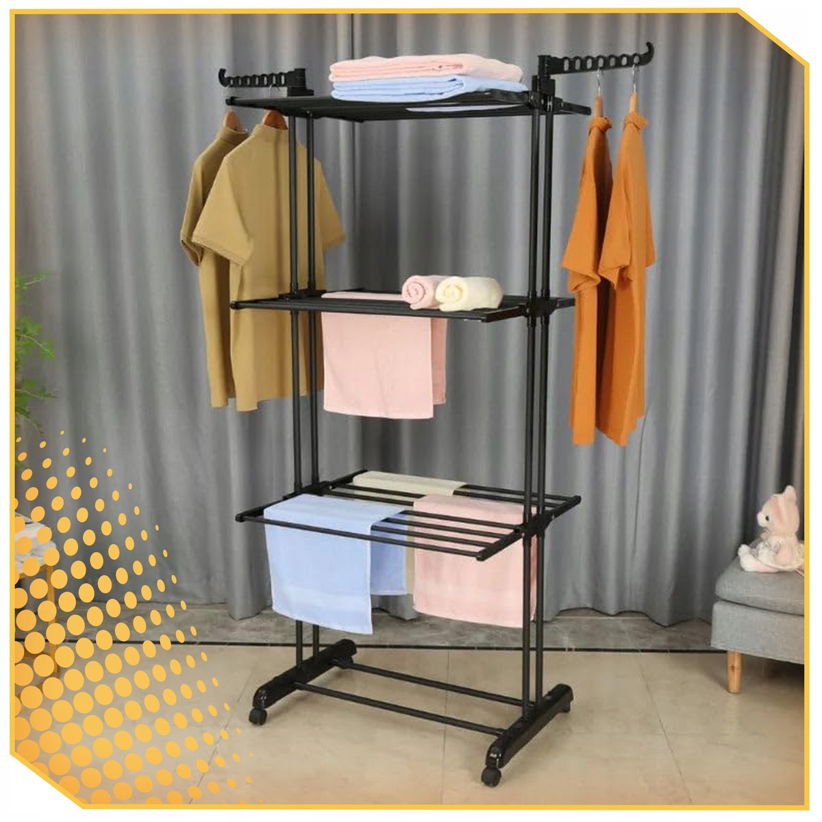 Suszarka pionowa oferuje aż 24 m powierzchni suszenia (3 półki i 14 miejsc na wieszaki), a jednocześnie jest bardzo kompaktowa (jej wymiary po rozłożeniu to tylko 78 cm x 64 cm 170 cm).