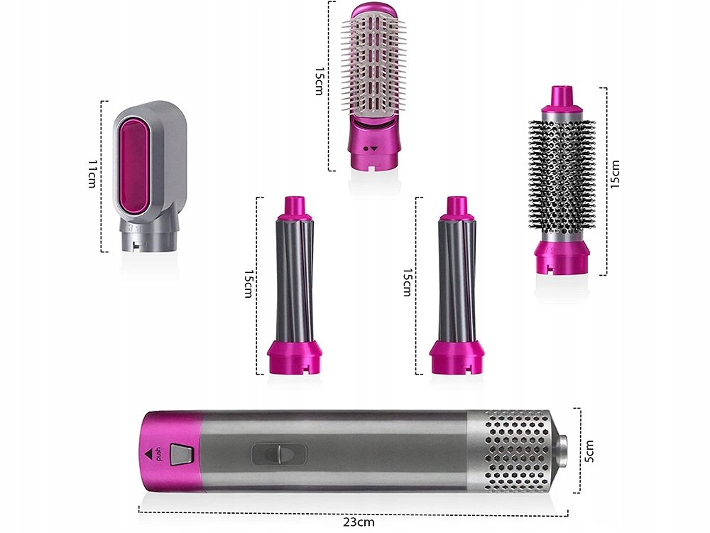 Idealne połączenie szczotki z gorącym powietrzem, masażera skóry głowy i lokówki do włosów. Ta szczotka z gorącym powietrzem umożliwia jednoczesne suszenie, prostowanie, zwijanie, modelowanie Twojej wymarzonej fryzury. Nadaje się do wszystkich rodzajów włosów, długich, grubych, zniszczonych czy farbowanych. ✅ Nasadka susząca ✅ Nasadka do kręcenia - loki prawe ✅ Nasadka do kręcenia - loki lewe ✅ Szczotka wygładzająca ✅ Okrągła szczotka - zapewniająca naturalne loki ✅ Kod produktu: 24139 ✅ Wysoka jakość wykonania ✅ 3-stopniowa regulacjia temperatury nawiewu ✅ 5 końcówek do stylizacji ✅ Szybko się nagrzewa ✅ Szybka stylizacja włosów ✅ Innowacyjny nawiew gorącego powietrza ✅ Praktyczny obrotowy przewód 360° ✅ Zasilanie: 220-240V 50/60Hz ✅ Moc: 1000W ✅ Ceramiczna powłoka ✅ Odpowiednia do wszystkich typów włosów ✅ Suszenie, prostowanie, kręcenie, zwiększanie objętości i układanie włosów ✅ Łatwa wymiana końcówek ✅ Długość kabla zasilającego: 170cm ✅ Kolor: szaro - różowy ✅ Produkt posiada certyfikat CE ☑️ Fabrycznie nową suszarkę ☑️ 5 końcówek ☑️ Oryginalne opakowanieSUSZARKA PROSTOWNICA LOKÓWKA ZESTAW DO WŁOSÓW 5w1