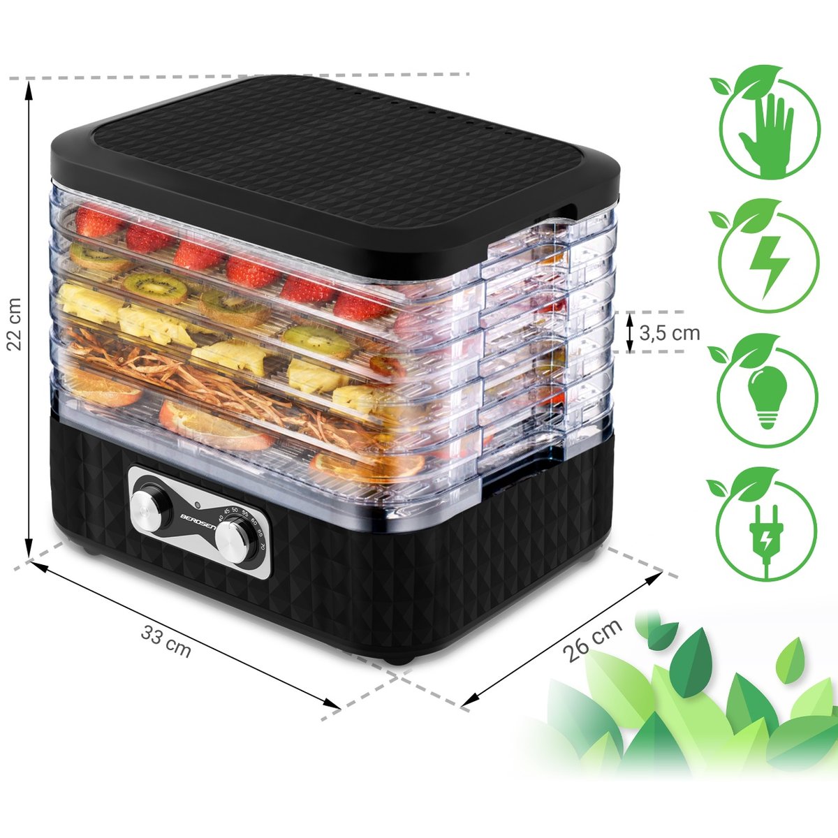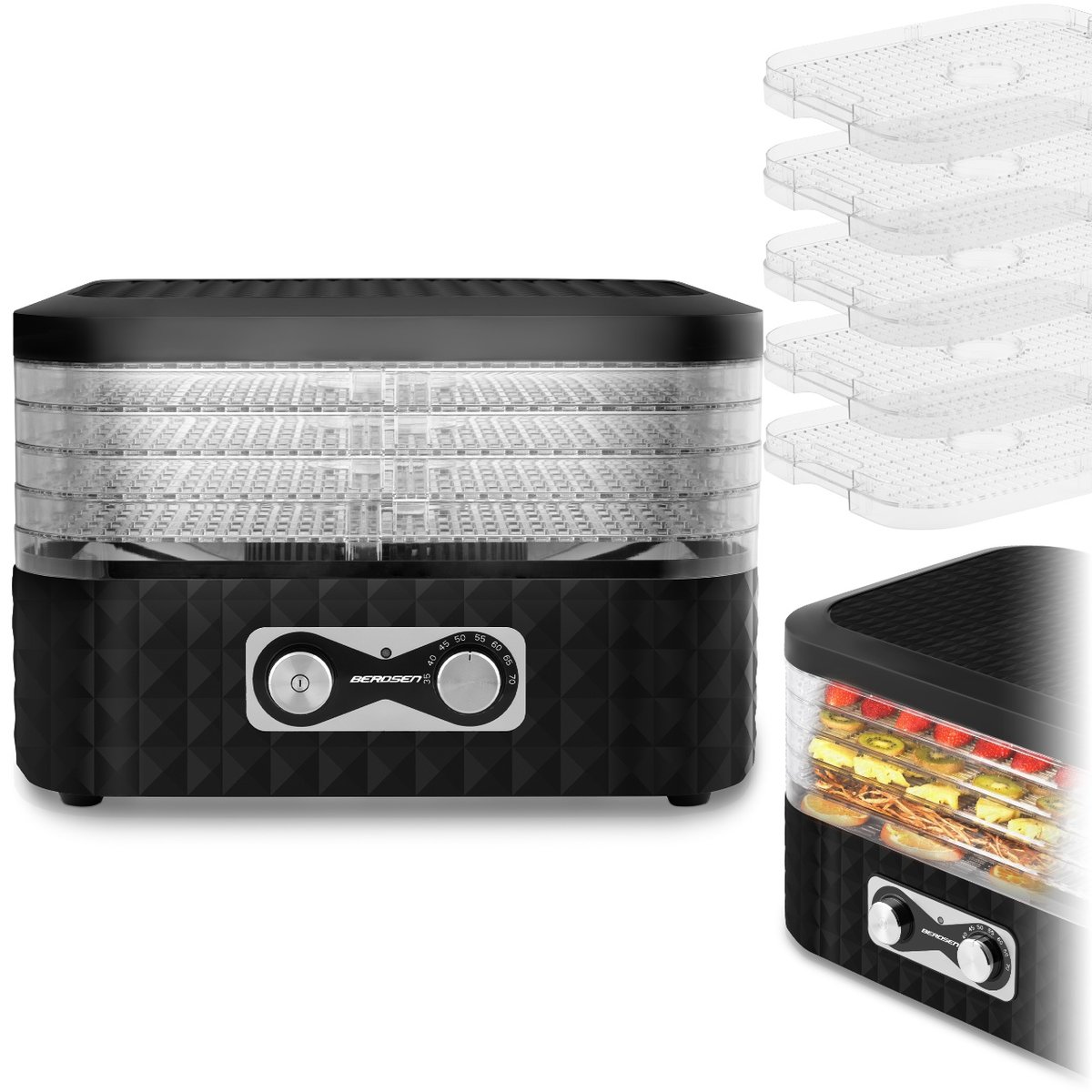 Suszarka spożywcza Berdsen do grzybów, owoców, warzyw, ziół, mięs regulacja temperatury 35-70°C / 5 tacek / zabezpieczenie przed przegrzaniem / pojemność 10 l Szybkie i dokładne suszenie Szukasz