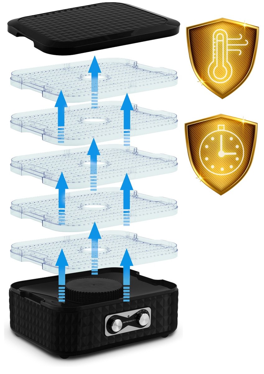 regulacja temperatury 35-70°C / 5 tacek / zabezpieczenie przed przegrzaniem / pojemność 10 l