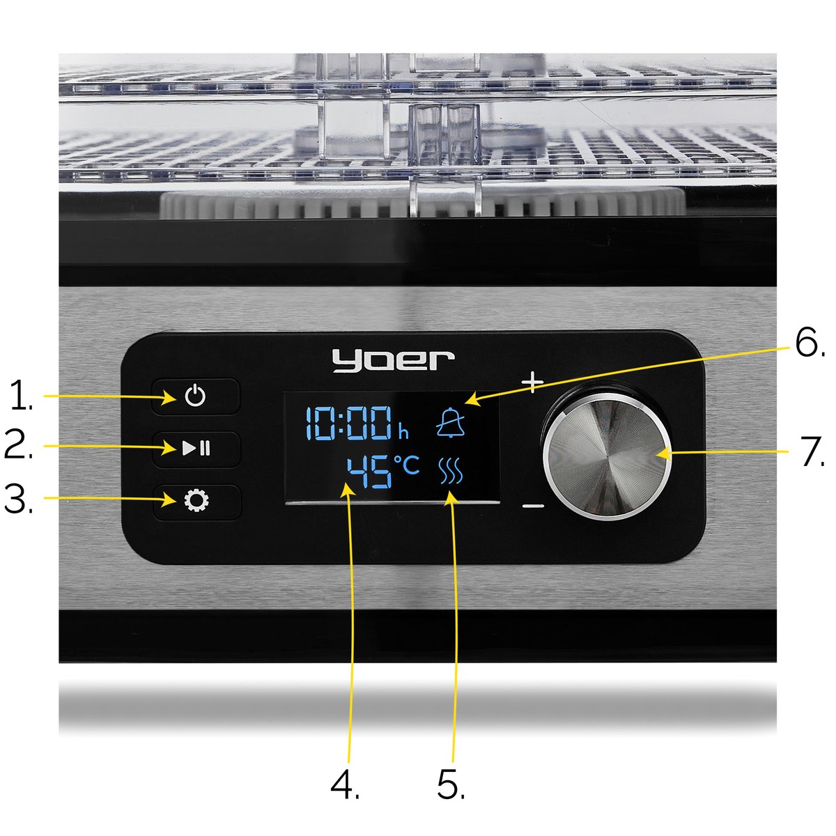 | Funkcje suszarki spożywczej: | płynna regulacja temperatury, możliwość powiększania o dodatkowe sita, regulacja odległości między sitami, składana konstrukcja, sterowanie cyfrowe, timer, wentylator |