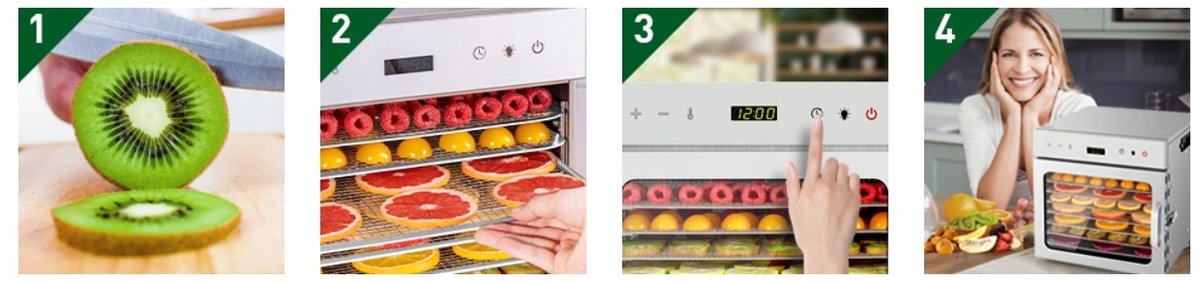 ✅ 8 poziomów suszenia + 6 elastycznych foliowych tac