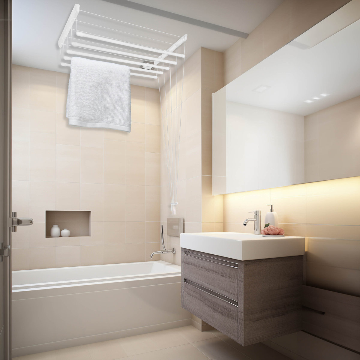 Właśnie zrecenzowałem SUSZARKA SUFITOWA NA PRANIE ŁAZIENKOWA, BIAŁA, 5 PRĘTÓW 140 CM