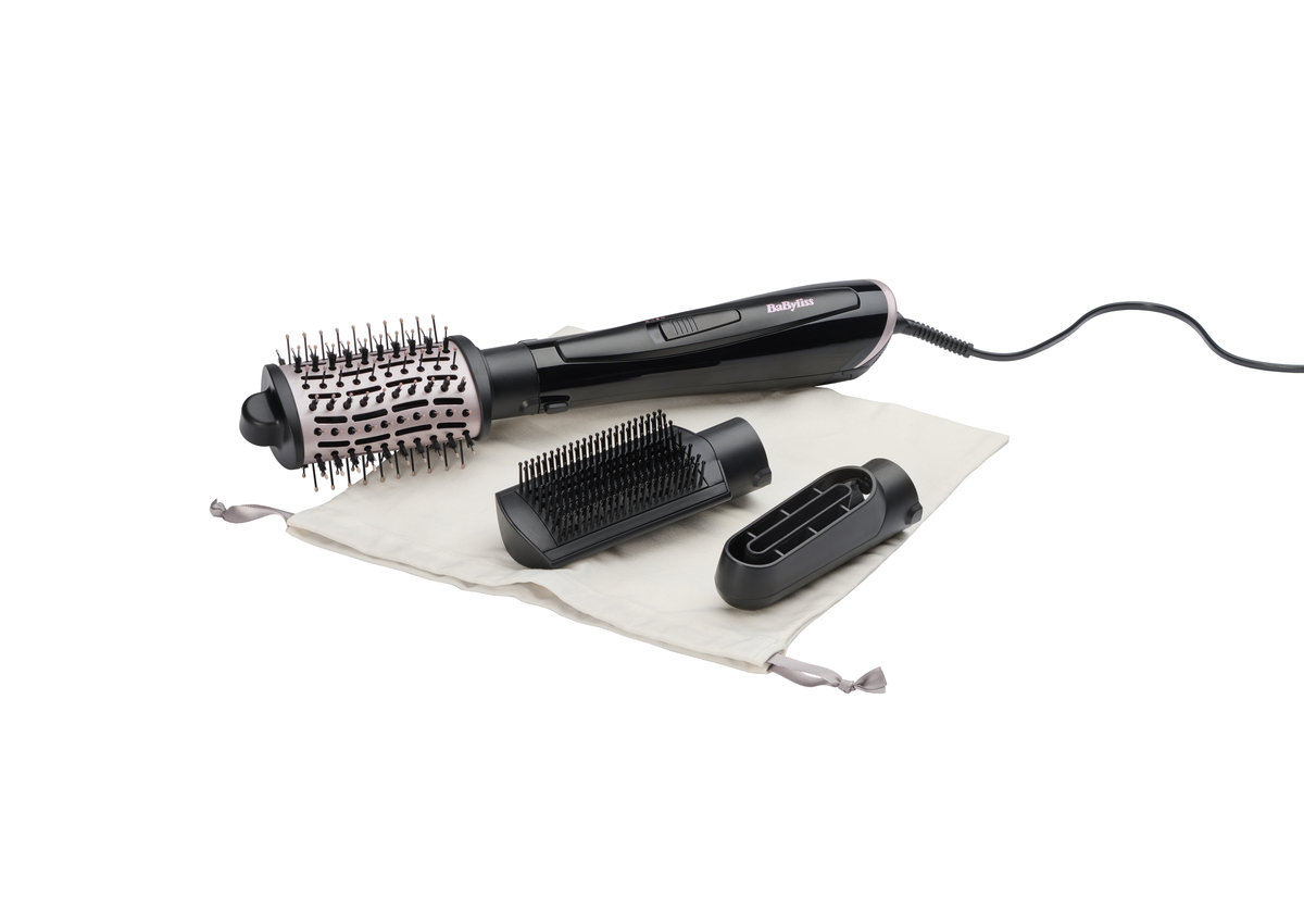 Lokosuszarka Perfect Finish o mocy 1000 W, Duża owalna szczotka zwiększająca objętość, Prostująca szczotka wygładzająca, Nasadka susząca, 2 temperatury i chłodzenie, Jonizacja, Obrotowy przewód o długości 2,2 m, Woreczek na kurz do przechowywania, 3 lata gwarancji