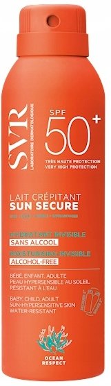 SVR Sun Secure lait creptiant SPF50+ to mleczka pianka, która łączy bardzo wysoką ochronę przeciwsłoneczną z odrobiną letniej zabawy. Unikalna konsystencja po aplikacji na skórę uwalniając bąbelki powietrza wydaje trzeszczące odgłosy - idealna zabawa dla dzieci.