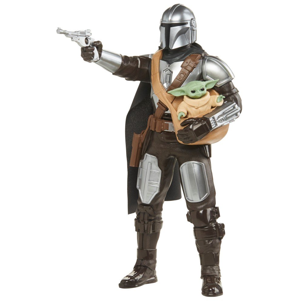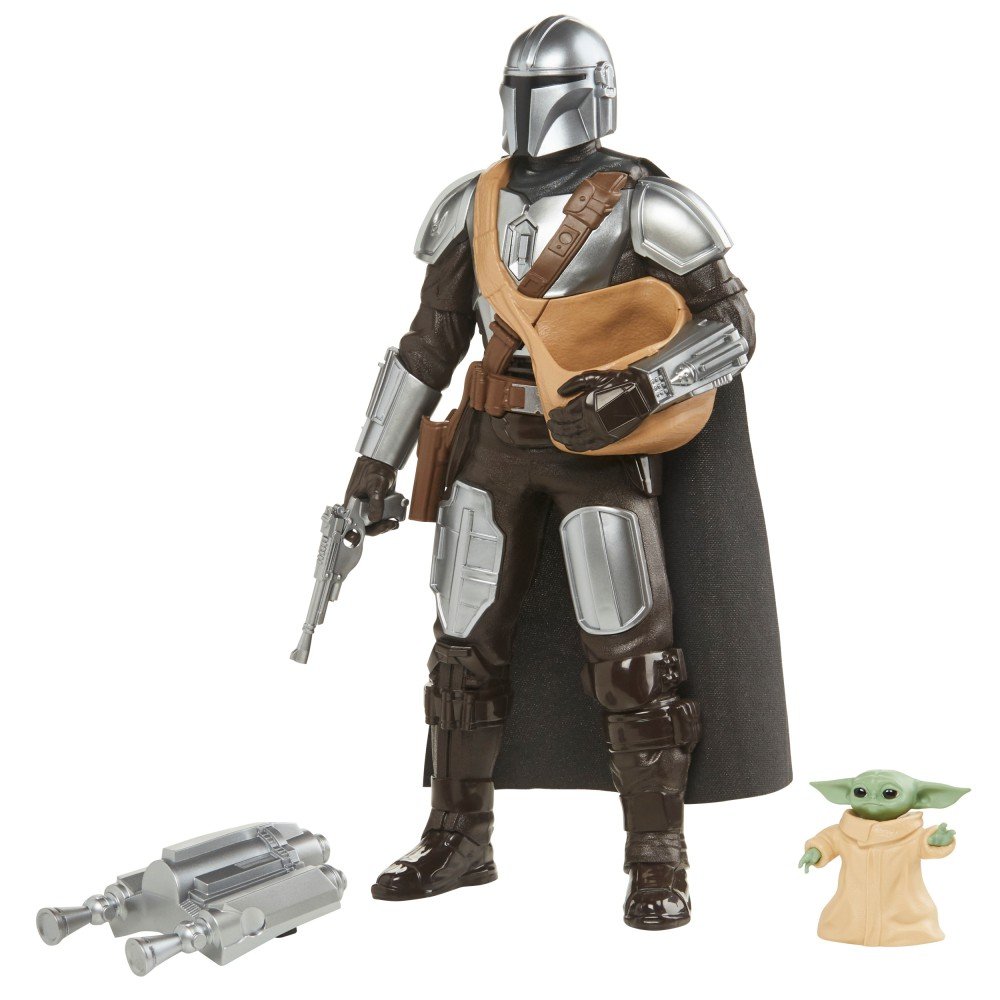 Naciśnij guzik na figurce Mandalorianina, by usłyszeć najbardziej charakterystyczne dla niego zdania lub naciśnij przycisk na plecaku odrzutowym - wyda wyjątkowe dźwięki specjalne. Figurka Mandalorianina ma 5 punktów zgięcia i może być ustawiona tak, by ukazywać go, lecącego i trzymającego w rękach Grogu.