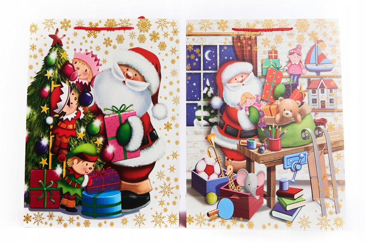 Świąteczna torebka prezentowa. Doskonale sprawdzi się jako opakowanie na prezenty.szerokość: 31 cmwysokość: 42 cmgłębokość: 12 cmW sprzedaży cztery wzory. W przypadku wyboru konkretnego wzoru prosimy