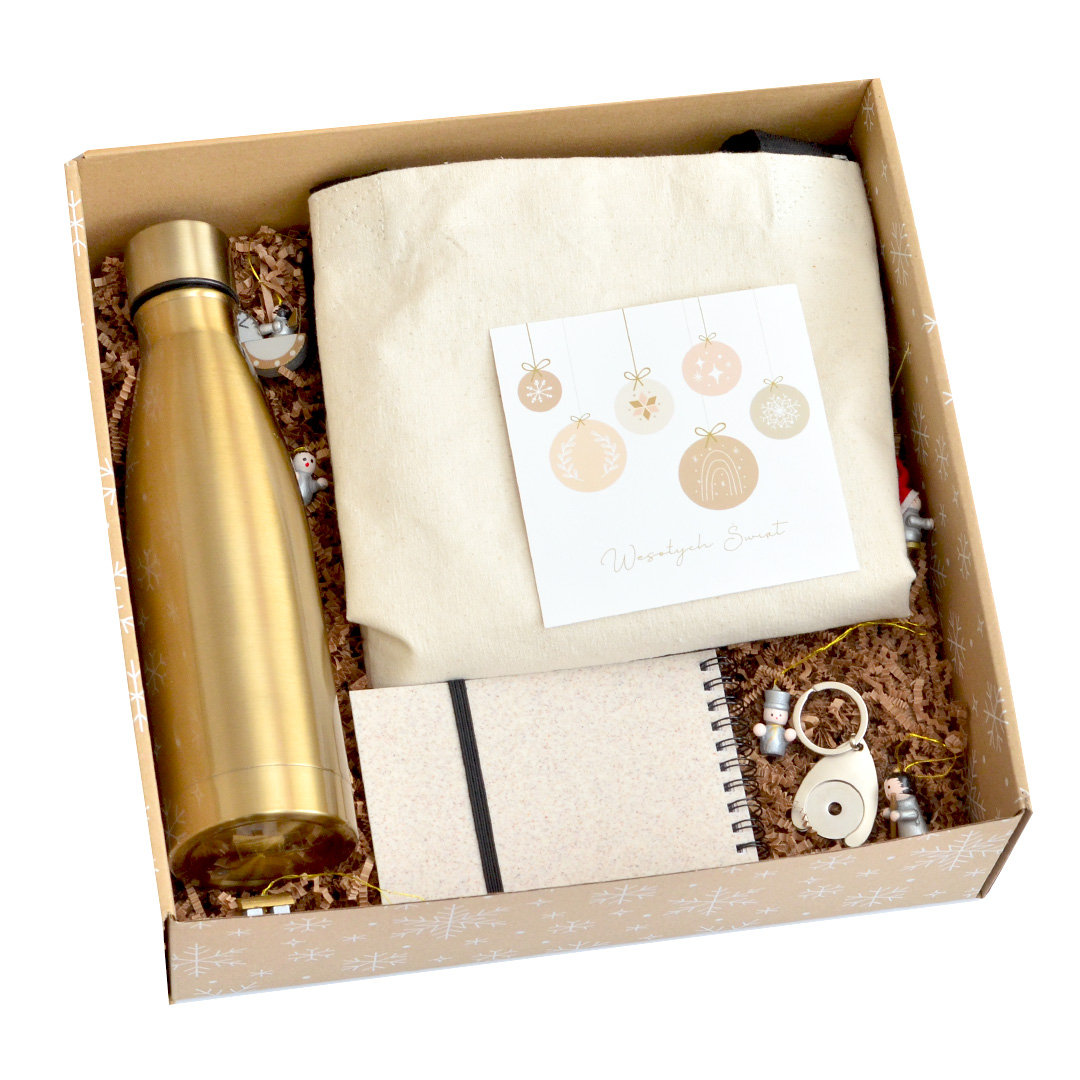 | Nazwa: | Świąteczny zestaw prezentowy – Torba, Notes, Butelka, Brelok z żetonem, Kartka |