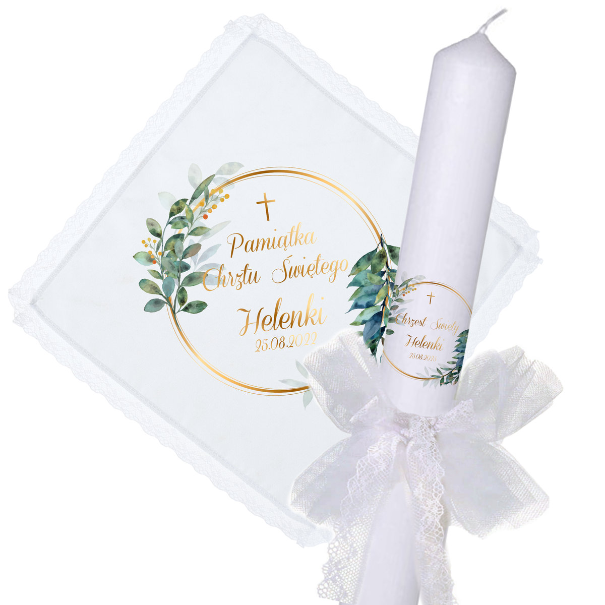 Oferujemy niezwykłą Pamiątkę Chrztu Świętego. Nasza świeca do Chrztu dodatek, który wniesie ciepło i wyjątkowy urok do tego ważnego dnia. Oferta zawiera zarówno świecę, białą, zdobioną szatkę do chrztu.