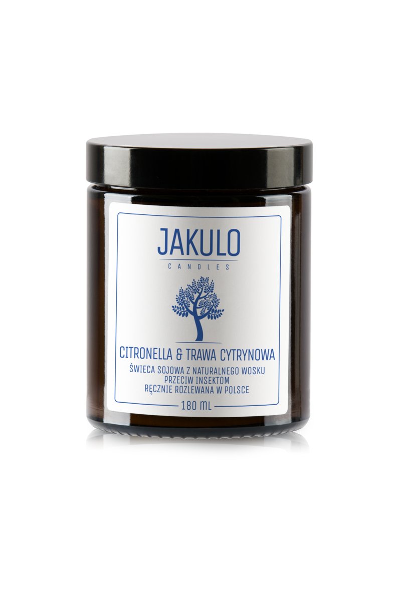 | Nazwa: | Świeca sojowa przeciw insektom - Citronella i Trawa Cytrynowa 180ml / JAKULO |