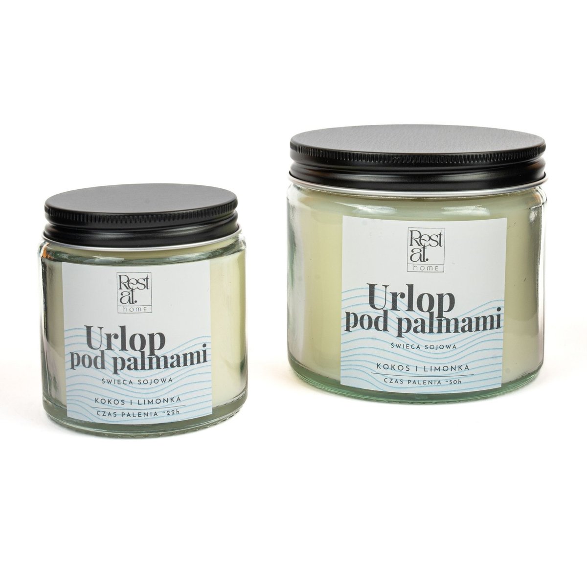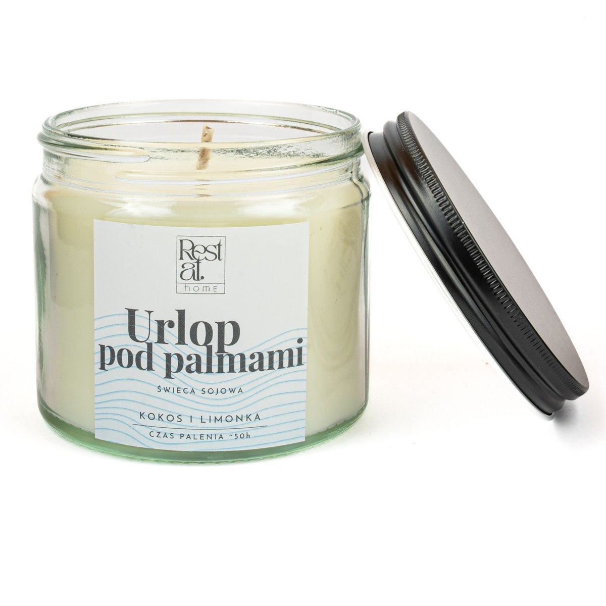 Zapomnij o codzienności i zanurz się w atmosferze tropikalnego raju z naszą Świecą Sojową “Urlop pod Palmami”. Połączenie słodkiego kokosa i świeżej limonki z nutą startego imbiru, wanilii i białym piżmem przeniesie Cię na białe piaszczyste plaże i wypełni Twoje wnętrze egzotycznym ukojeniem i witalnością.