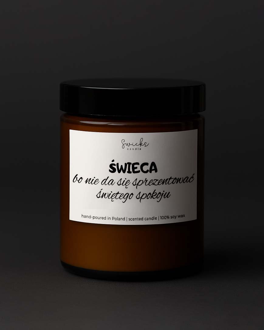 Świeca sojowa bo nie da się sprezentować świętego spokoju ☑️ Zapach: bergamotka z pomarańczą ☑️ Pojemność: 180 ml - około 37 godzin palenia ☑️ SKŁAD: 100% wosk sojowy, kompozycja zapachowa ...