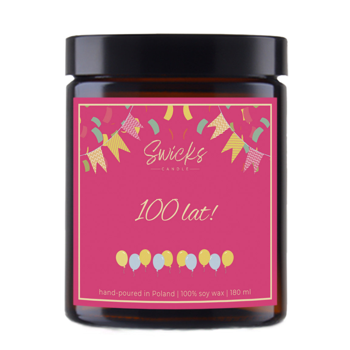 Zapachowa świeca sojowa na urodziny z napisem Sto Lat 180ml.