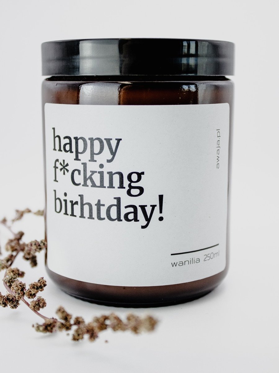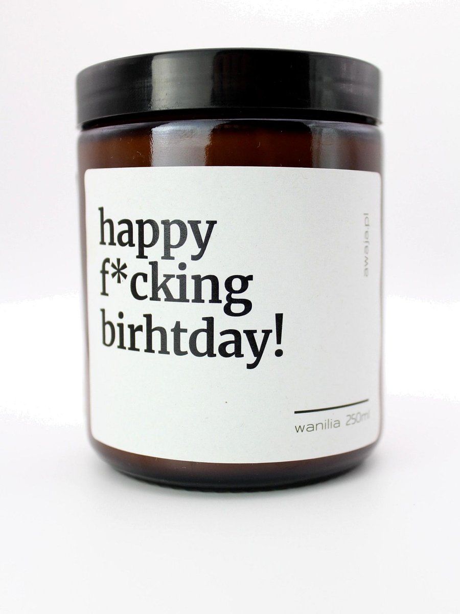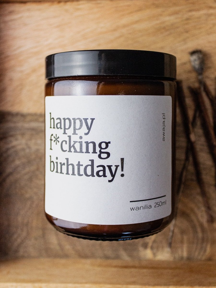 Ręcznie robiona świeca sojowa o zapachu wanilii – „happy f*cking birthday!” Bo co może lepiej uczcić urodziny niż świeca, która nie bawi się w czułe słówka? „happy f*cking birthday!” – bo, szczerze ...