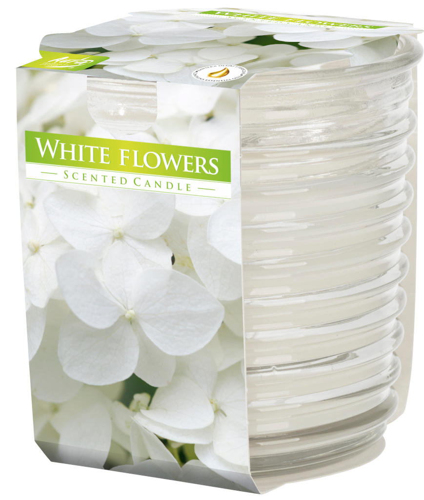 Świeca zapachowa w karbowanym Szkle białe Kwiaty 28 h